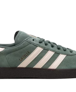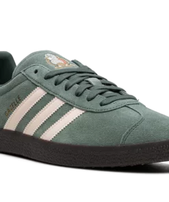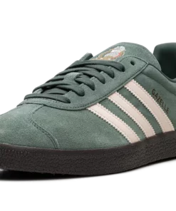 The adidas Gazelle “Mexico” is a colorway of the retro soccer sneaker inspired by Mexico’s national soccer team. From a collection of adidas Gazelle colorways that celebrates 1970s-era soccer (football), the “Mexico” colorway features a Green Oxide suede construction with Wonder White leather adidas Three Stripes branding on the sides. A gold “Gazelle” logo appears on the lateral side of the mid-panel. An adidas Trefoil logo is found on the white leather heel tab and a graphic inspired by Mexico’s national soccer team appears on the tongue. A dark gum sole completes the look. Release date: December 1, 2023