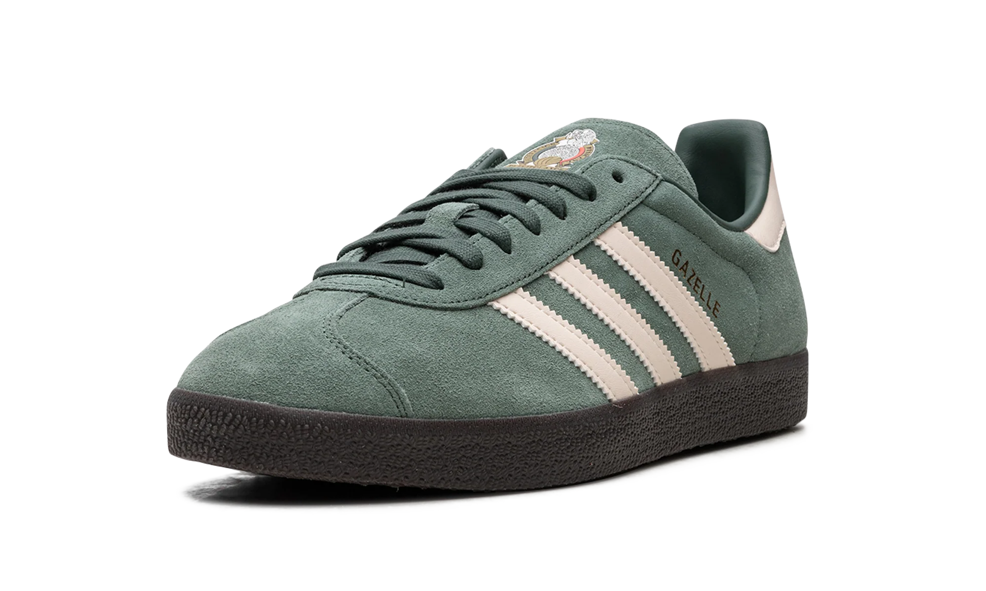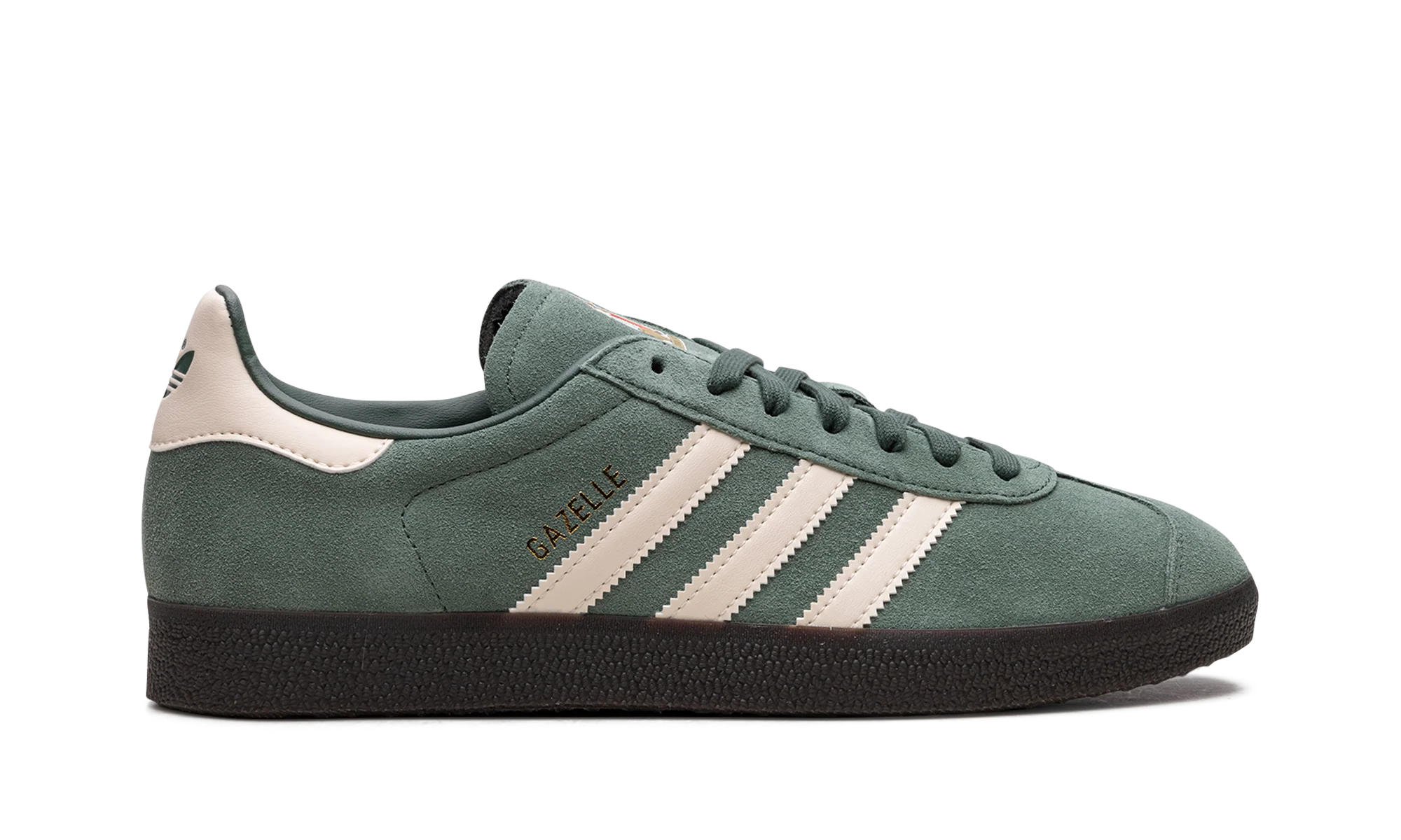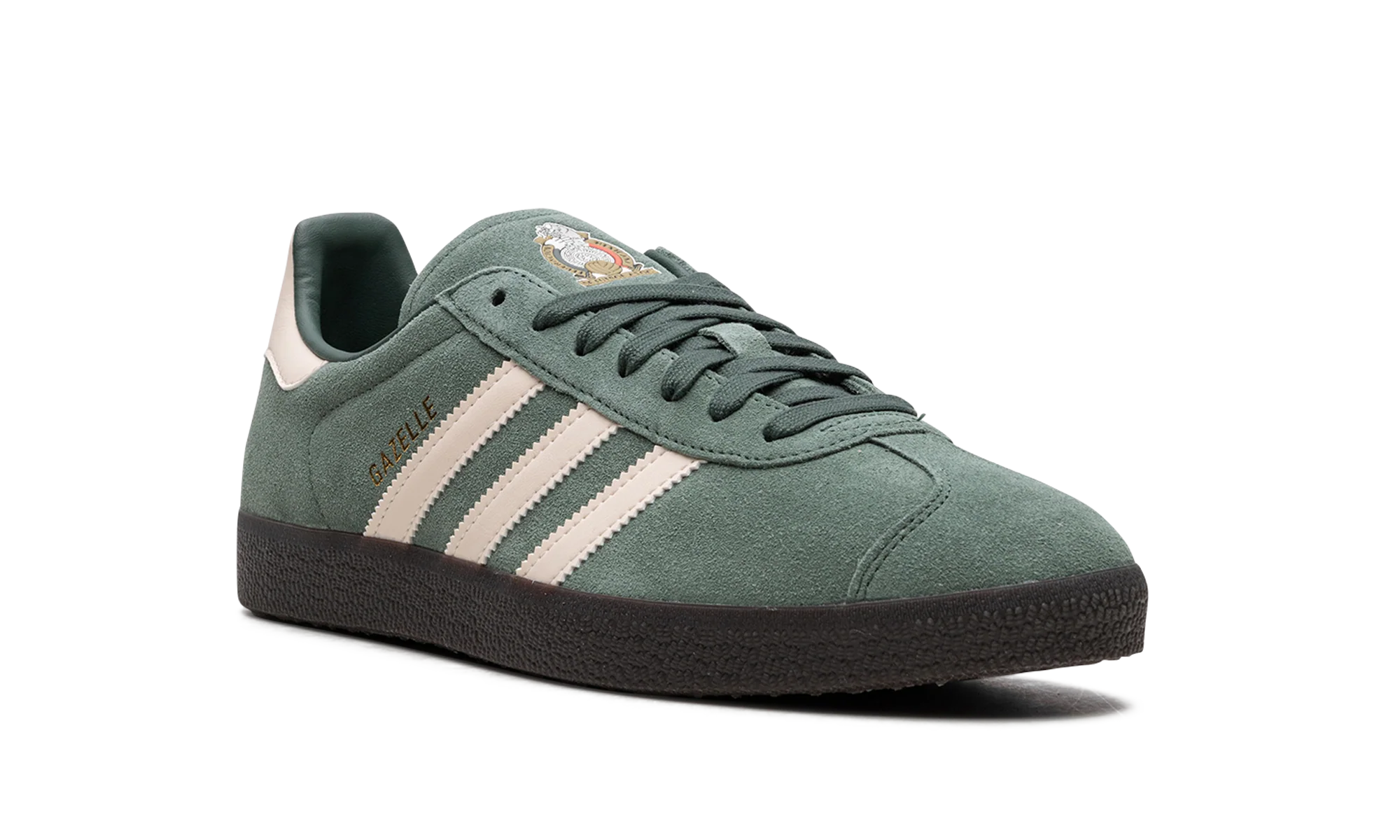 The adidas Gazelle “Mexico” is a colorway of the retro soccer sneaker inspired by Mexico’s national soccer team. From a collection of adidas Gazelle colorways that celebrates 1970s-era soccer (football), the “Mexico” colorway features a Green Oxide suede construction with Wonder White leather adidas Three Stripes branding on the sides. A gold “Gazelle” logo appears on the lateral side of the mid-panel. An adidas Trefoil logo is found on the white leather heel tab and a graphic inspired by Mexico’s national soccer team appears on the tongue. A dark gum sole completes the look. Release date: December 1, 2023