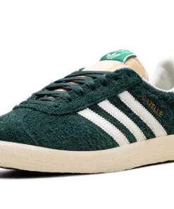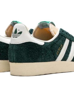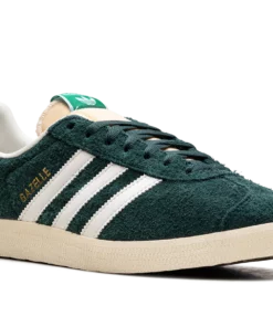 Walk in the footsteps of history with the Adidas Gazelle, an indoor classic redefined in the elegant “Mineral Green” colorway. This timeless icon honors the beloved 1991 version with a plush and supple suede upper and signature serrated 3-Stripes in contrasting off-white. The low-profile silhouette features an iconic T-toe and is grounded by a traditional rubber outsole, offering dependable grip. The eye-catching colors and gold foil ‘Gazelle’ lettering lend modern style to this retro favorite.