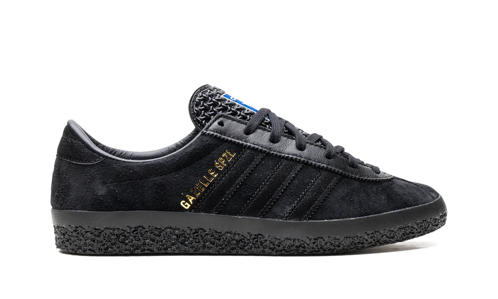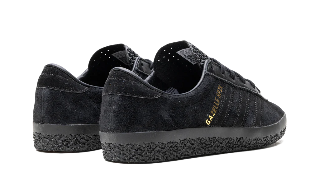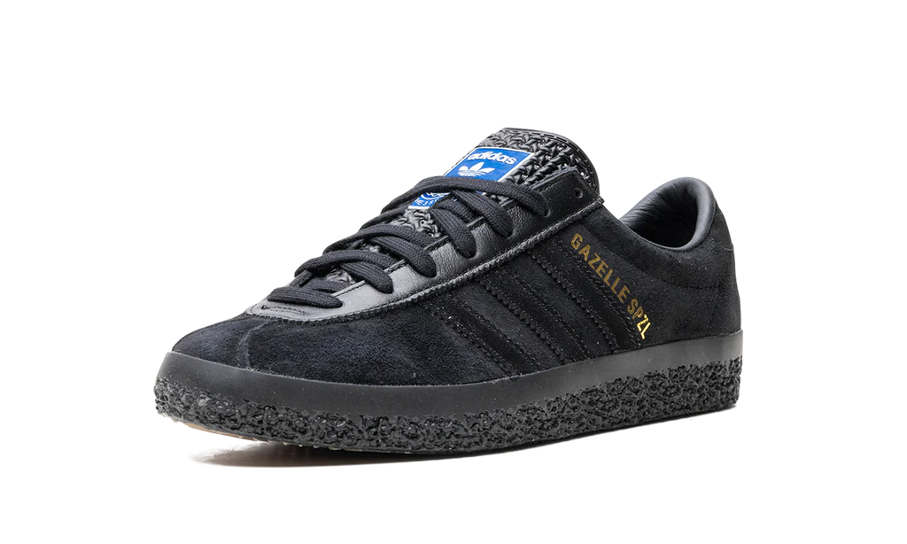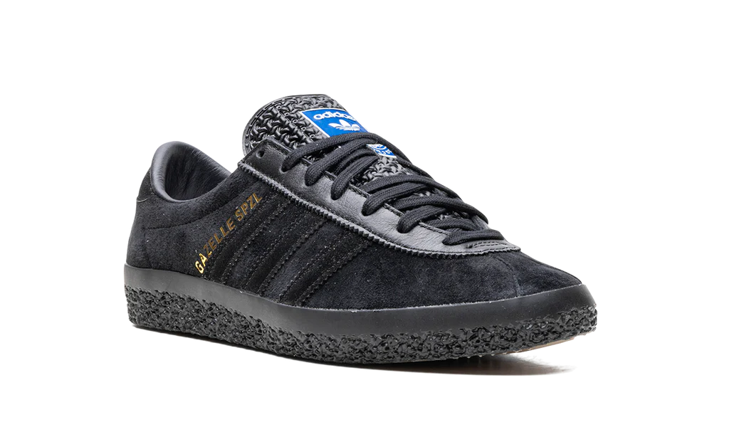 The adidas Gazelle SPZL “Triple Black” is a monochromatic black colorway of the retro shoe by adidas archivalist and Spezial founder Gary Aspden’s collaboration. From adidas’s Autumn/Winter 2023 collection, the adidas Gazelle SPZL “Triple Black” is a modern take on the classic silhouette that fuses elements of adidas Gazelles from the 1960s, 1970s, and 1980s. The upper has an all-black suede construction with tonal Three Stripes branding on the sides. A gold “Gazelle SPZL” logo is printed on the lateral side of the mid-panel. Classic “adidas” detailing can be seen on the tongue. A black textured rubber sole completes the look.