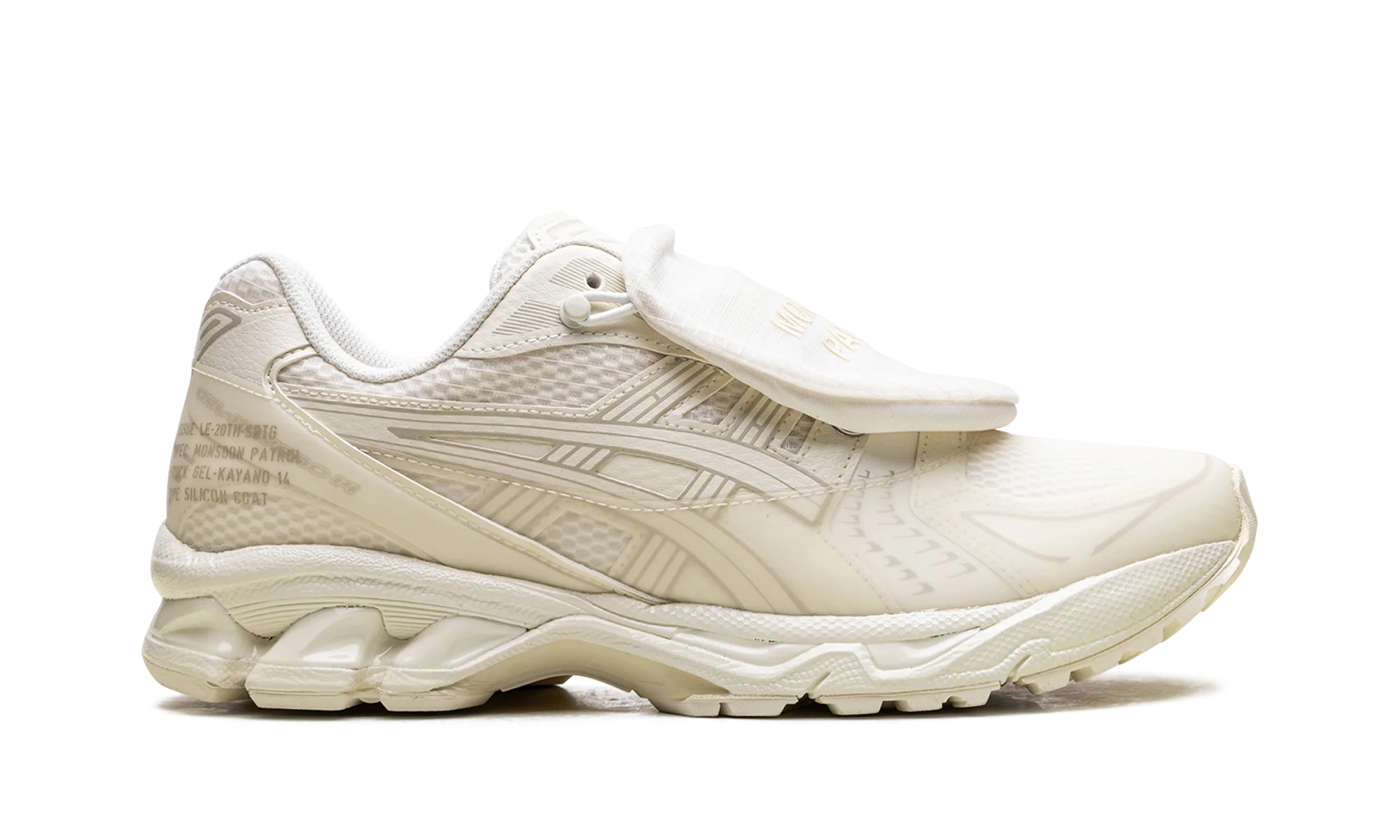 Embark on your urban exploration with the rugged yet refined ASICS GEL-KAYANO 14 “Monsoon Patrol – Cream.” This special collaboration with SBTG brings a unique military-inspired aesthetic to the iconic GEL-KAYANO 14 silhouette. The “Monsoon Patrol – Cream” colorway features a durable construction and earthy tones, ready to tackle any adventure. Experience the signature comfort and support of the GEL-KAYANO series, combined with a bold and distinctive design. Monsoon Patrol – Cream