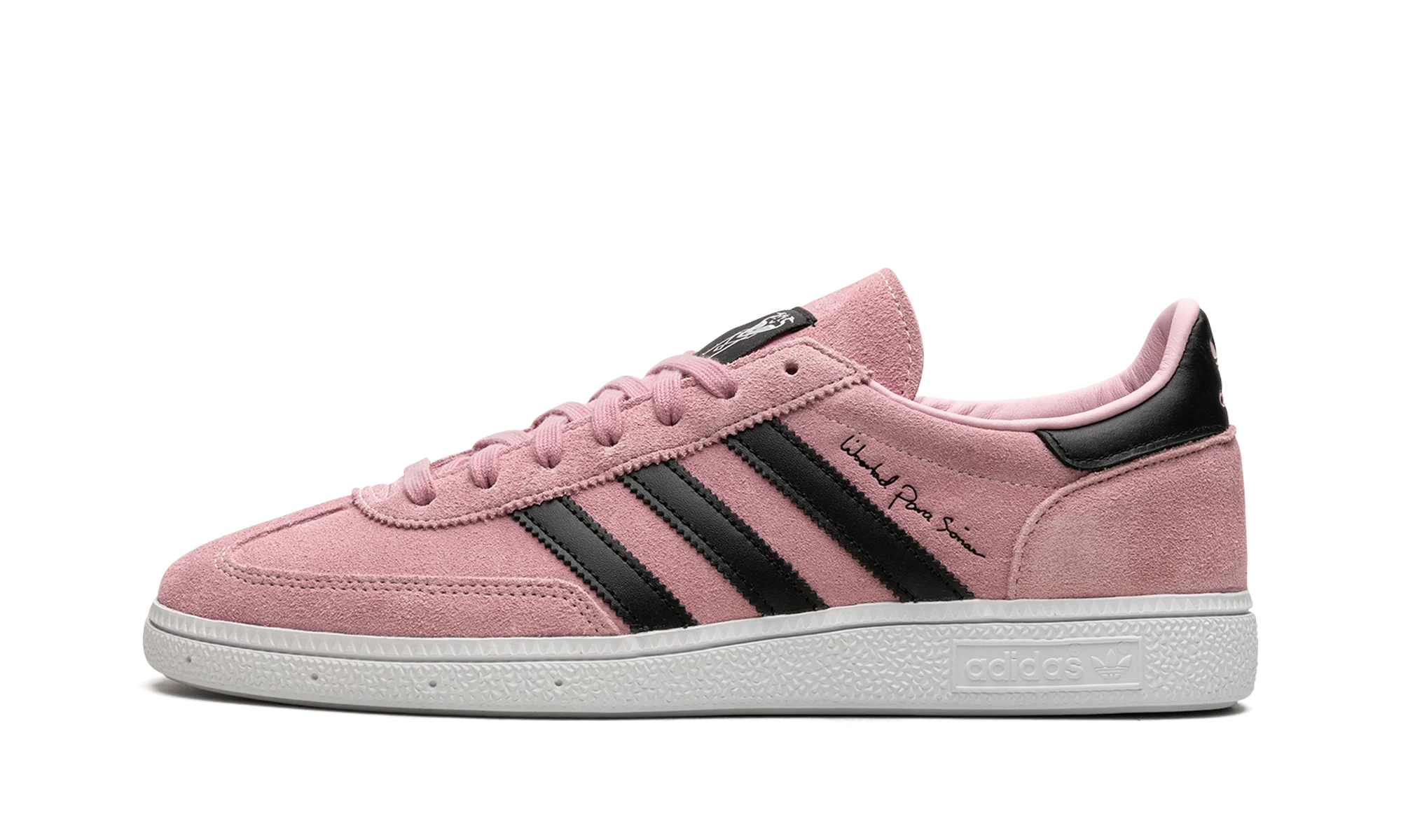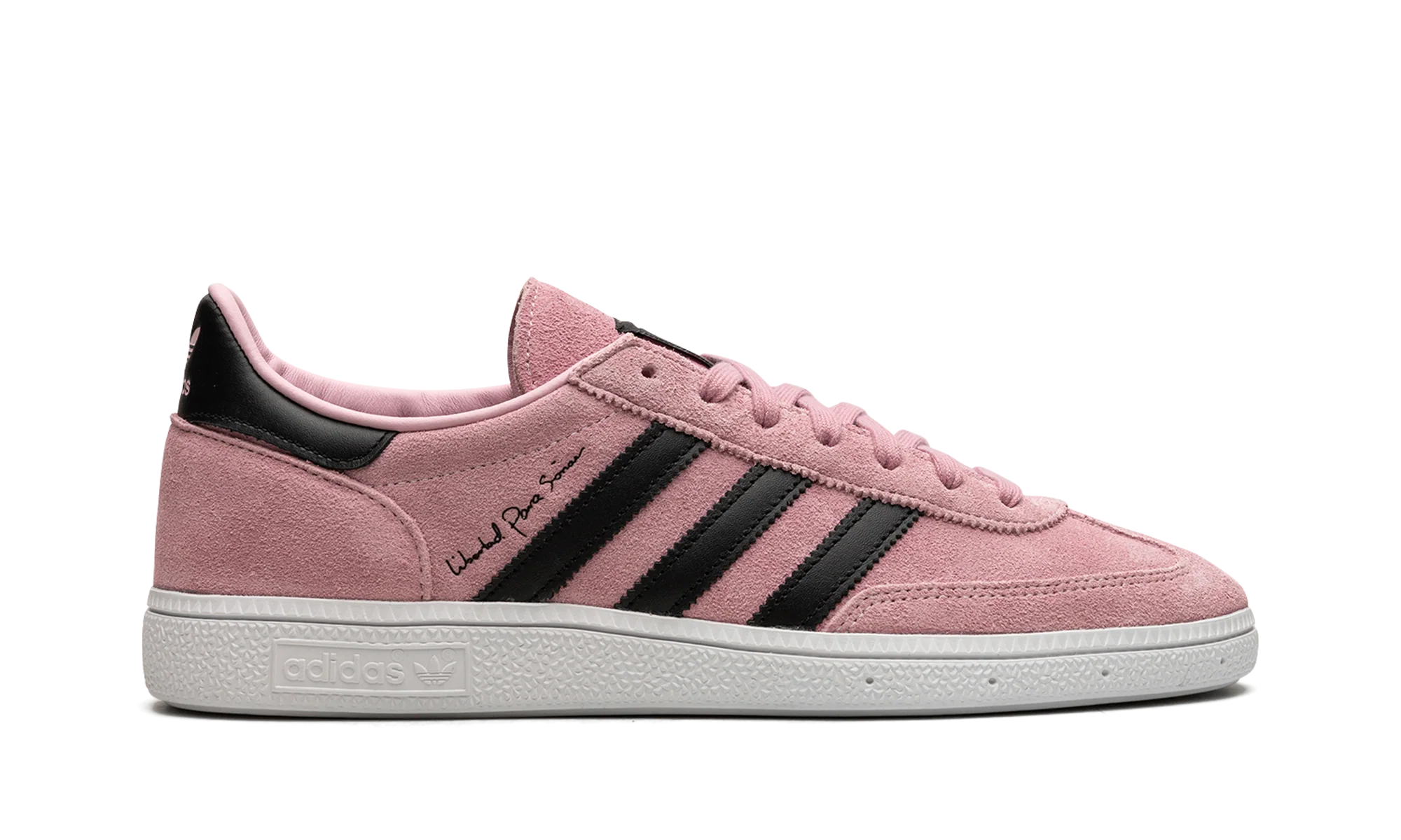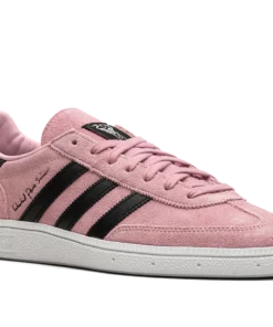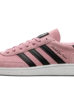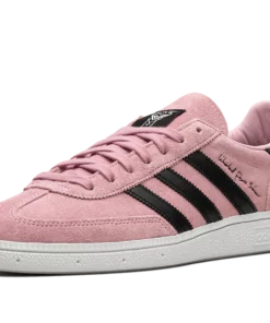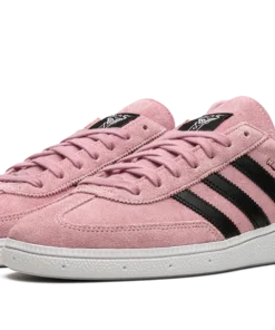 The Inter Miami CF x adidas Handball Spezial is a collaboration between the Miami, Florida based soccer team and adidas on the retro sneaker. From a collection by Inter Miami CF and adidas that also includes apparel options, the adidas Handball Spezial features the soccer team’s uniform colors on its design for an intriguing look. The upper is complete with a pink suede construction with tonal suede overlays on the toe and heel. Contrasting black leather Three Stripes branding appears on either side of the shoe. Co-branding can be found on the tongue. Underfoot, a white rubber sole completes the look IMCF