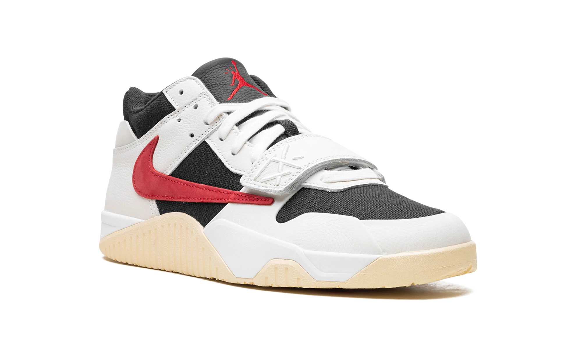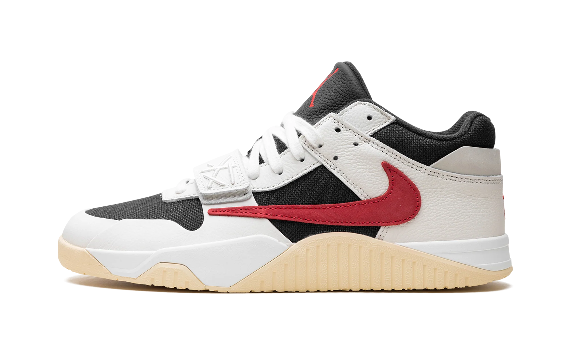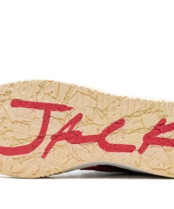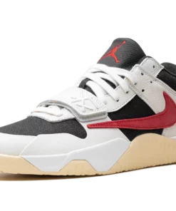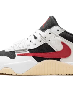 The Travis Scott x Jordan Jumpman Jack University Red is a popular colorway of hip-hop star Travis Scotts first-ever signature shoe. Following a long history of collaborating with Nike and Jordan Brand, Travis Scott debuted his first signature shoe, the Jumpman Jack, with Jordan Brand in 2024. The University Red colorway features elements from Scotts previous work with Nike and Jordan, including a backwards Swoosh and his signature branding. On the University Red colorway, the upper has a black textile base, Sail leather overlays, and a backwards University Red suede Swoosh on the lateral side. A white leather midfoot strap provides a lockdown fit. As mentioned, Traviss signature branding appears throughout the design. Underfoot, a gum rubber outsole completes the look. Release date: May 10, 2024 Travis Scott – University Red