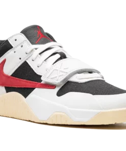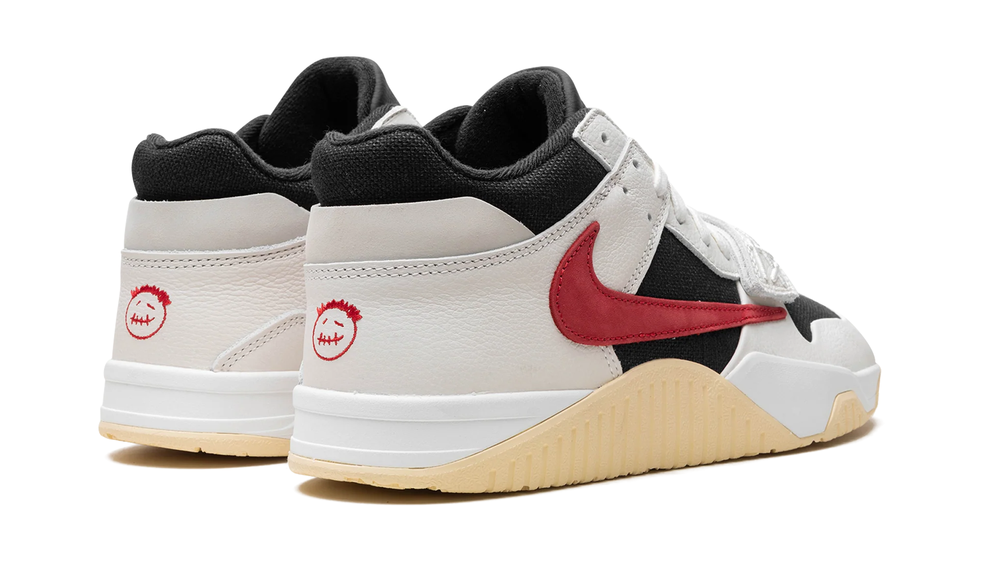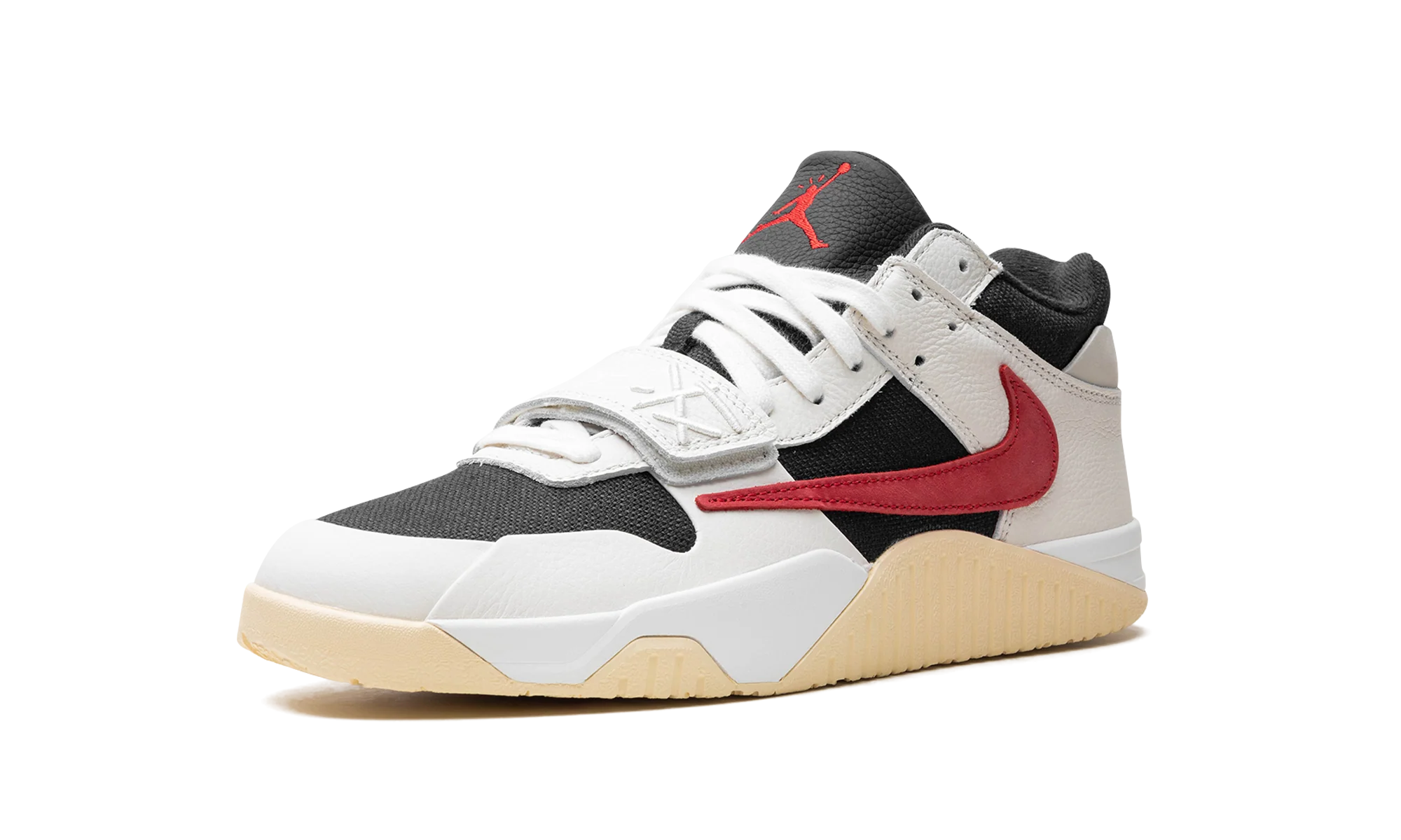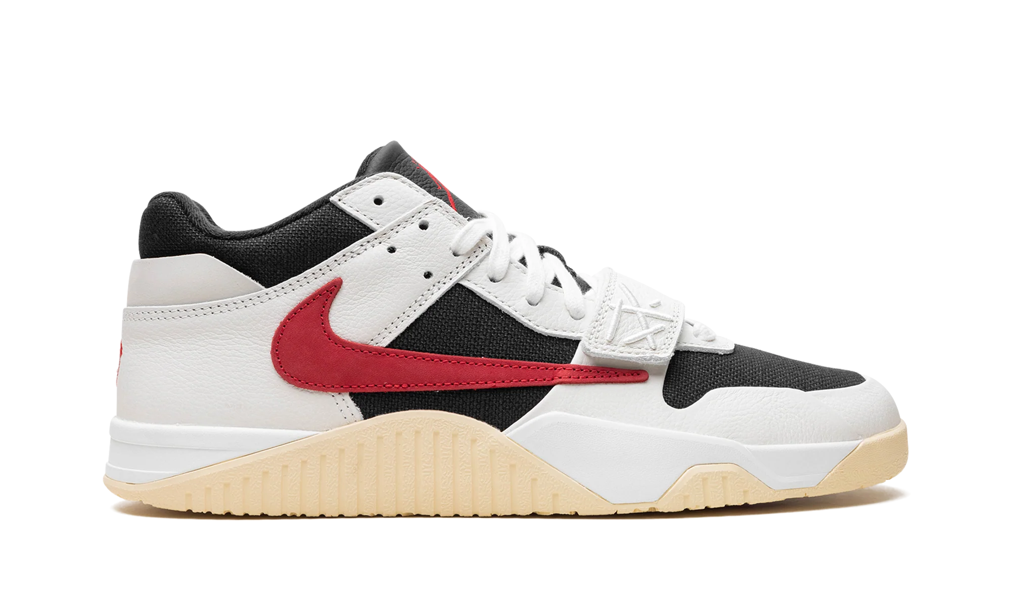 The Travis Scott x Jordan Jumpman Jack University Red is a popular colorway of hip-hop star Travis Scotts first-ever signature shoe. Following a long history of collaborating with Nike and Jordan Brand, Travis Scott debuted his first signature shoe, the Jumpman Jack, with Jordan Brand in 2024. The University Red colorway features elements from Scotts previous work with Nike and Jordan, including a backwards Swoosh and his signature branding. On the University Red colorway, the upper has a black textile base, Sail leather overlays, and a backwards University Red suede Swoosh on the lateral side. A white leather midfoot strap provides a lockdown fit. As mentioned, Traviss signature branding appears throughout the design. Underfoot, a gum rubber outsole completes the look. Release date: May 10, 2024 Travis Scott – University Red