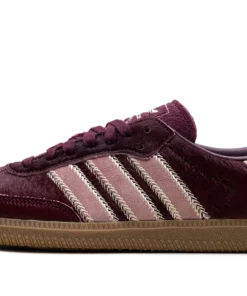 Elevate your style with the Wmns Samba OG, also known as the “Maroon Sand Strata Pony.” This unique take on the classic Samba silhouette features distinctive materials like pony hair, adding a touch of luxury to the sporty design. The Maroon and Sand Strata tones offer a sophisticated color palette, while the iconic Samba details remain. Maroon Sand Strata Pony