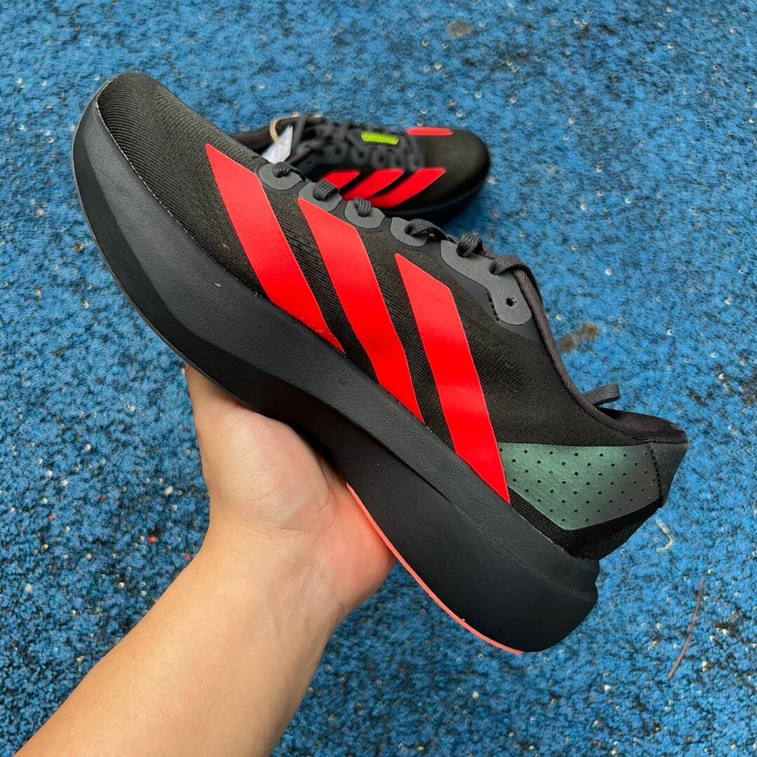 Unleash your true speed and redefine your personal bests with the revolutionary Adidas Adizero Evo SL Running Shoes in a commanding Black and vibrant Solar Red colorway. Meticulously engineered for the athlete who demands the absolute lightest and fastest experience, these shoes are your ultimate weapon for breaking records and dominating the race track. Designed with cutting-edge Adidas technology, the Adizero Evo SL combines a minimalist profile with maximum performance, ensuring every stride is efficient, powerful, and incredibly swift. Experience unparalleled responsiveness and a barely-there feel that propels you relentlessly towards victory, leaving the competition in your dust.