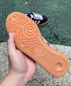 - Distinctive Colorway: A captivating combination of ‘Core Black’ with ‘Clear Pink’ accents on the stripes and heel tab, all grounded by a timeless ‘Gum’ rubber outsole for a striking contrast.