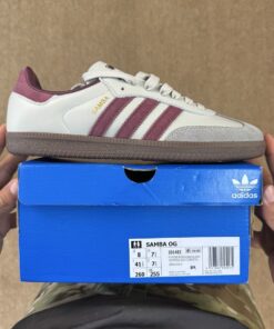 Step into a legend with the Adidas Samba OG Cream White Better Scarlet Gum IE7015. This iconic silhouette, revered for its rich heritage and unmistakable style, gets a sophisticated update with a crisp Cream White upper, vibrant Better Scarlet accents, and the timeless appeal of a classic Gum sole. Designed for both comfort and a distinct aesthetic, these sneakers effortlessly blend football heritage with modern street fashion, making them an indispensable addition for anyone looking to elevate their everyday style with an authentic and versatile classic.