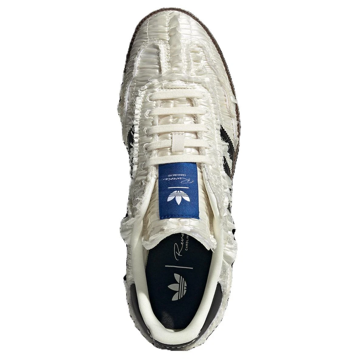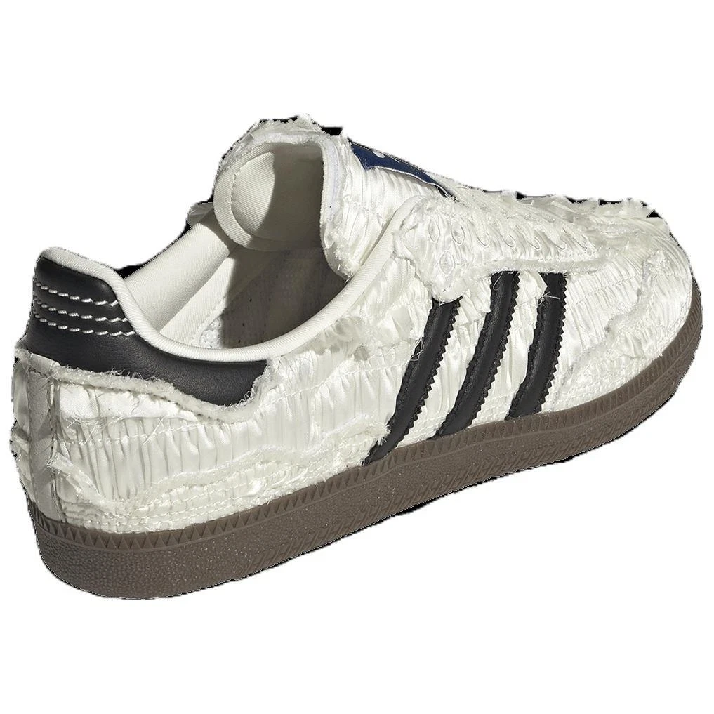 Elevate your style with the Samba Reverie collaboration between Caroline Hu, CLOT and adidas—a unique take on the classic Samba silhouette. This edition boasts a luxurious satin-finish upper in a soft off-white (“Reverie – Off White”) palette, accented with subtle black and gum-rubber sole details.