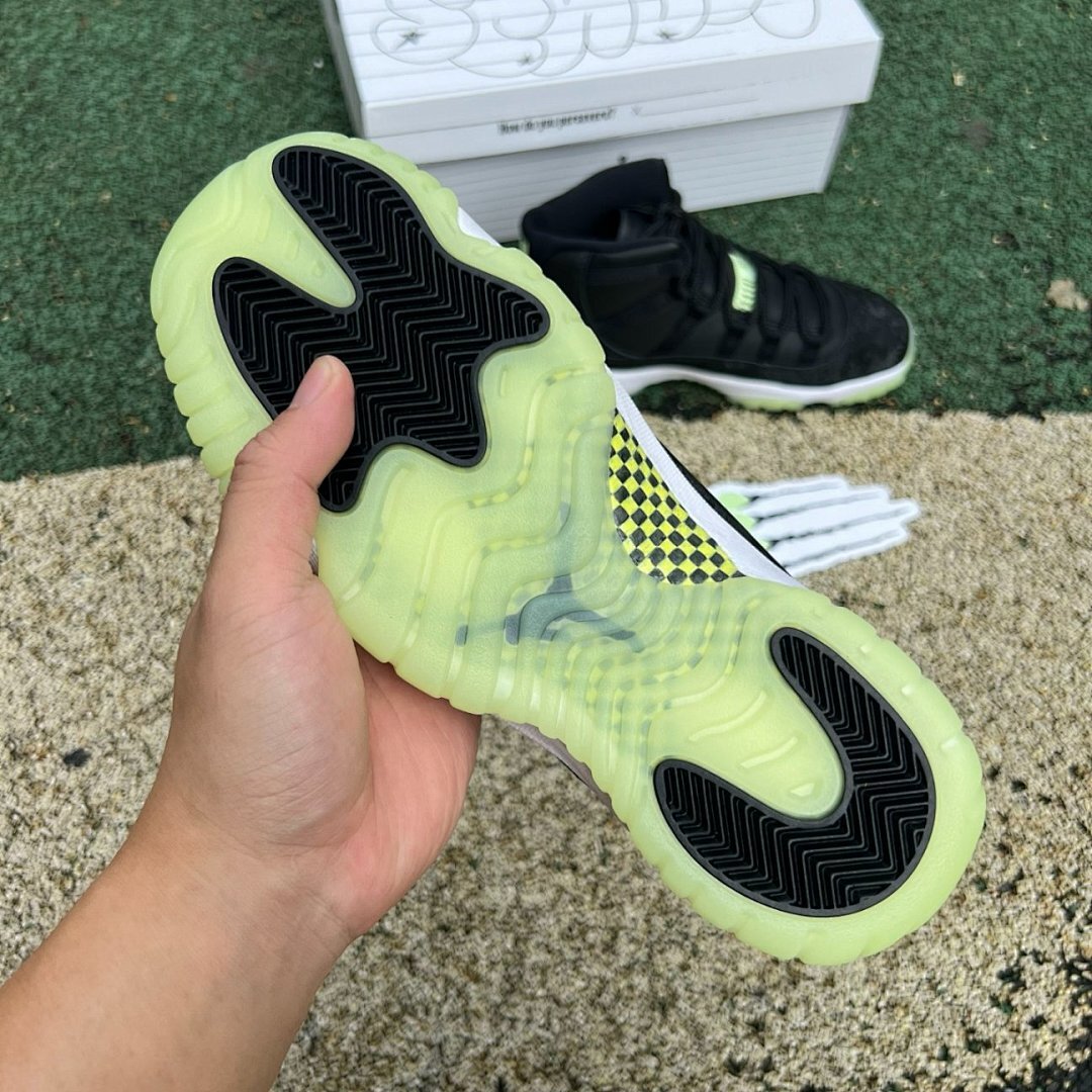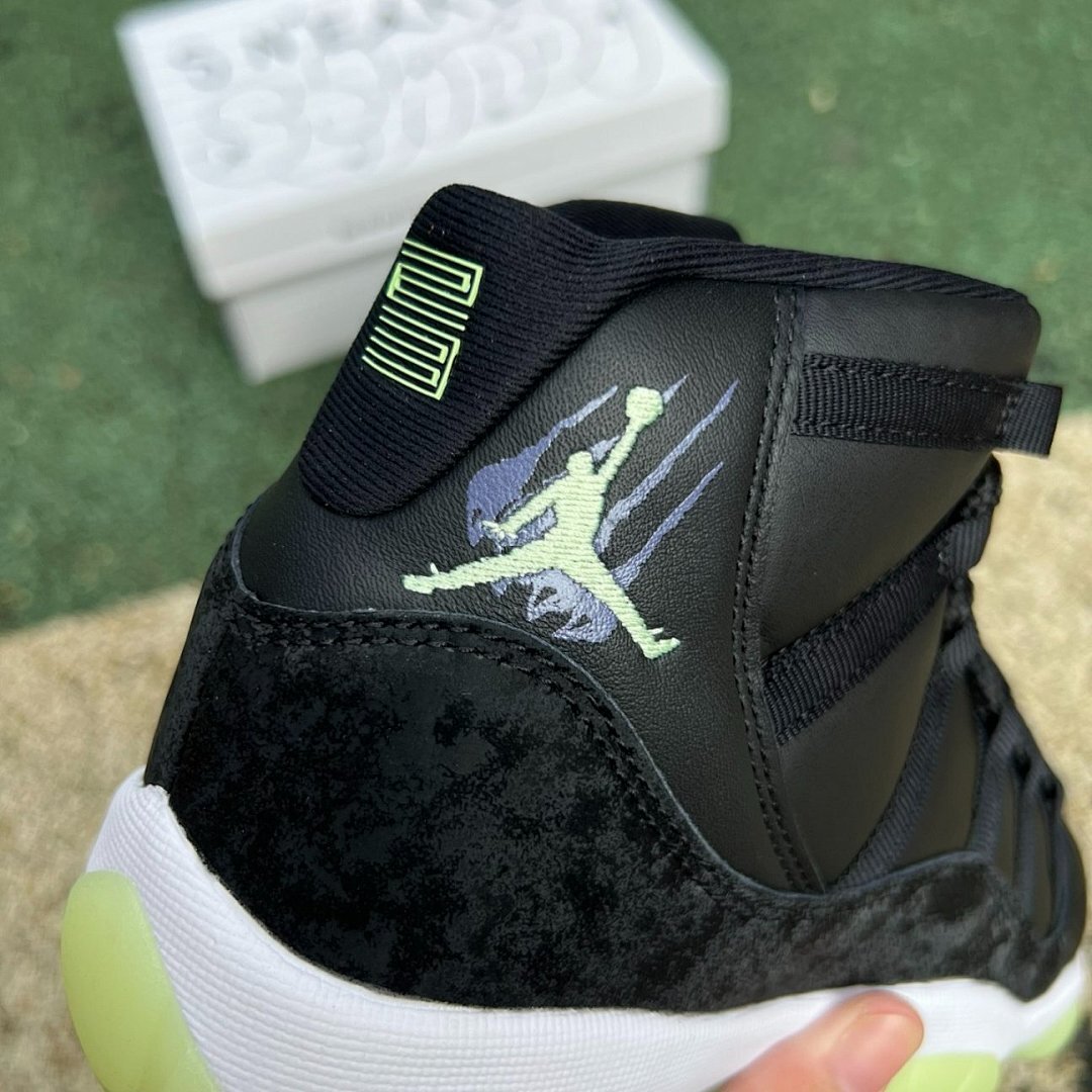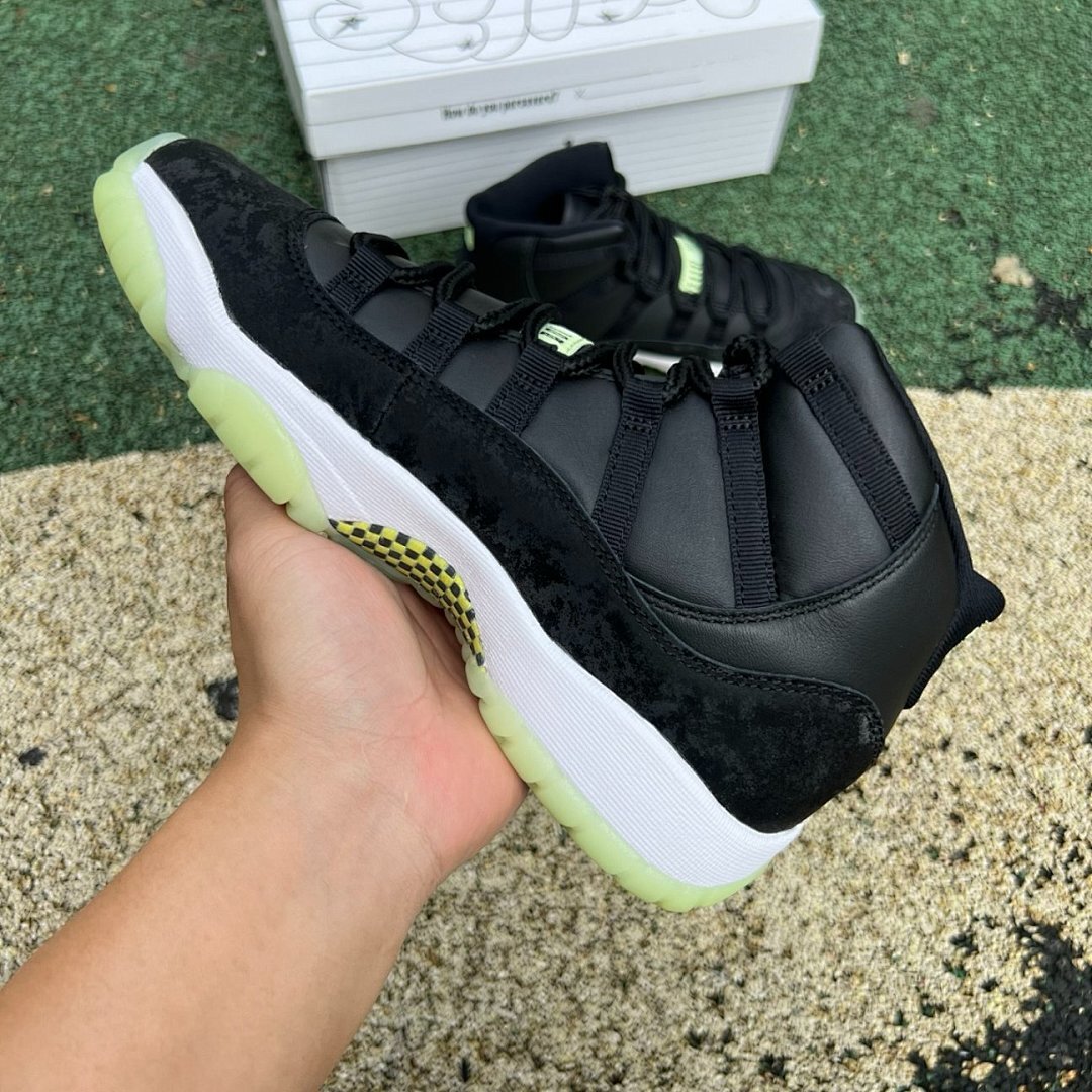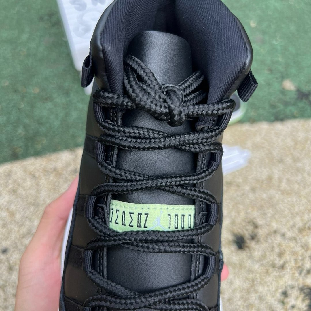 Air Jordan 11 Retro Black Green Glow Cracked Patent – Command Attention with Every Step
