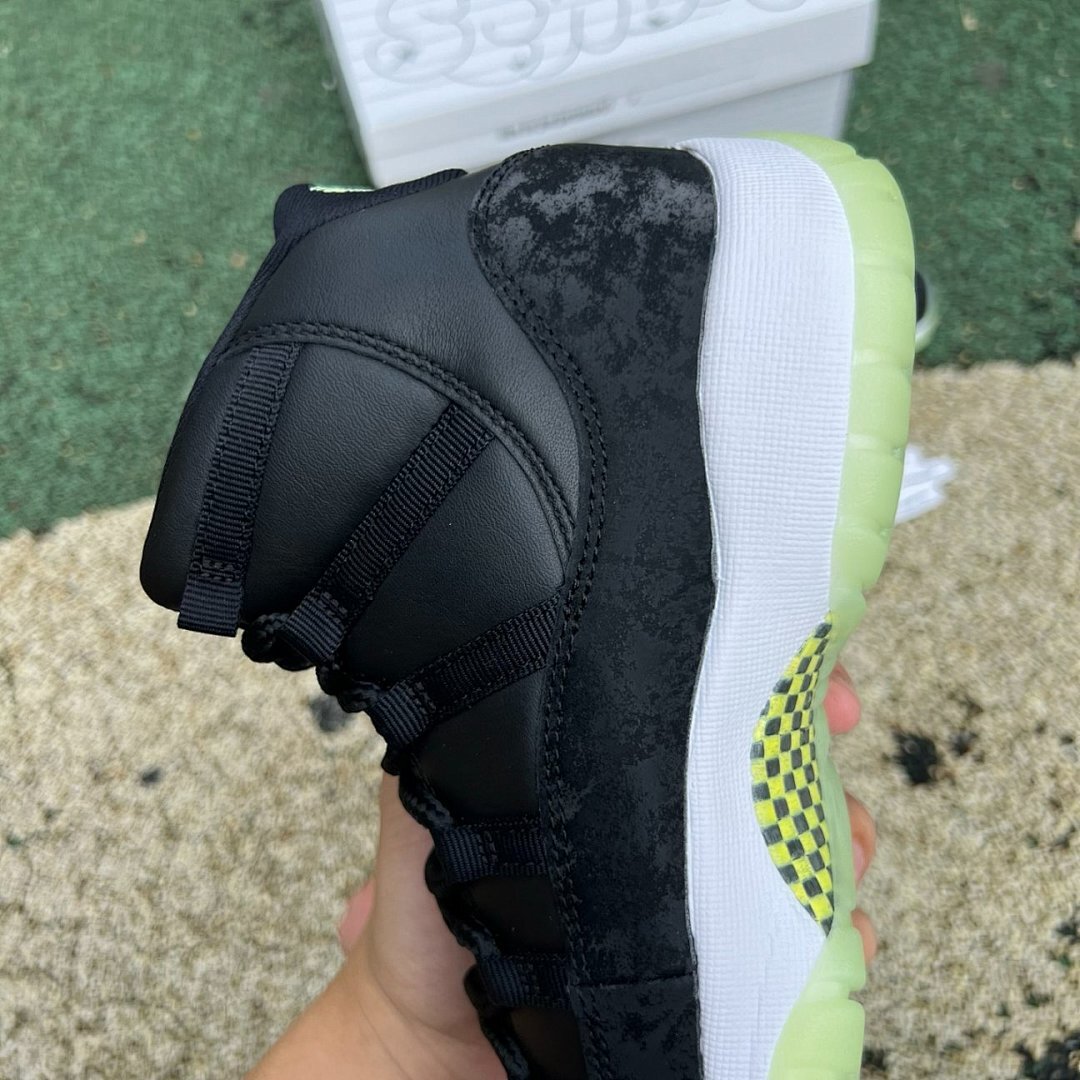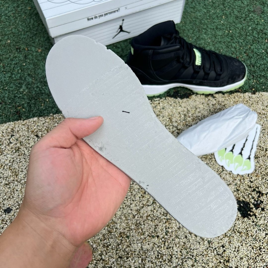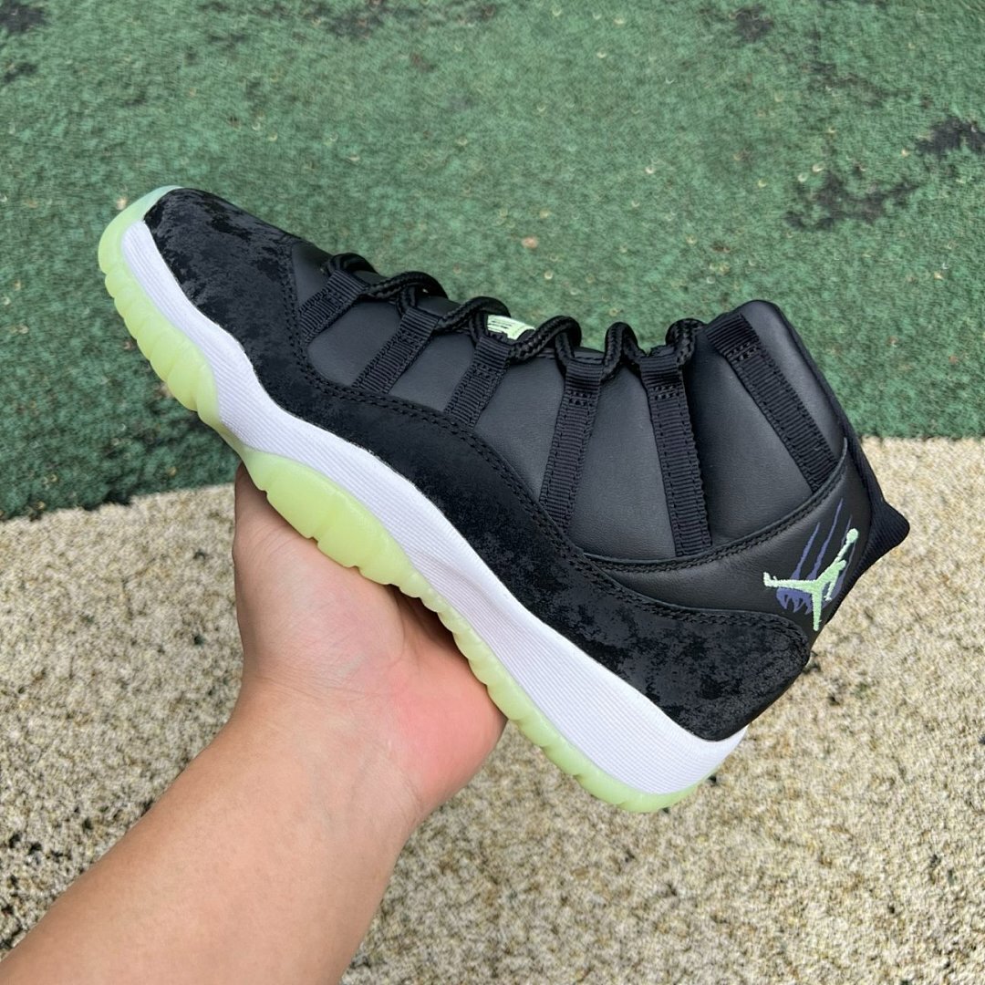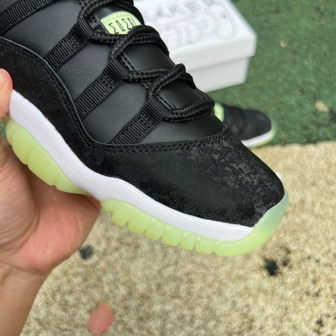 Air Jordan 11 Retro Black Green Glow Cracked Patent – Command Attention with Every Step