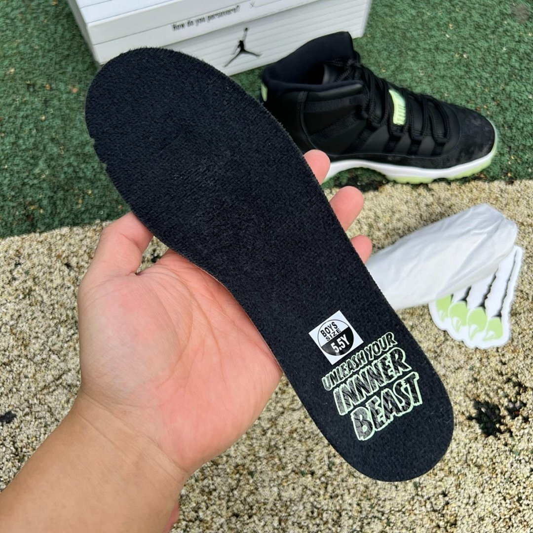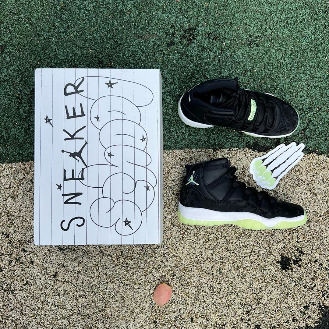 Step into legendary status with the Air Jordan 11 Retro Black Green Glow Cracked Patent. This iconic silhouette, re-imagined for today’s sneaker connoisseur, seamlessly blends heritage with an audacious modern twist. Crafted for those who dare to stand out, this sneaker features a striking black upper, elevated by a distinctive “cracked” patent leather mudguard that catches the light and the eye. Paired with electrifying Green Glow accents, this edition of the Air Jordan 11 isn’t just a shoe; it’s a statement piece, offering unparalleled style, supreme comfort, and a rich legacy that resonates with every stride. Perfect for both the court and the street, prepare to turn heads and elevate your sneaker game to an entirely new echelon.