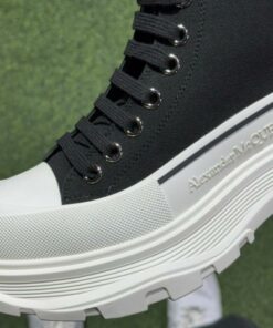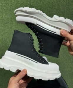 Step into unparalleled style and audacious design with the Alexander McQueen Tread Slick Boot. Available at AllStarShirt Store, this iconic high-top boot perfectly fuses rugged utility with high-fashion sophistication. Crafted for those who dare to make a statement, its striking black canvas upper and distinctive oversized white sole command attention, offering both exceptional comfort and an unmistakable edge to any ensemble. Elevate your footwear game with a piece that embodies luxury, craftsmanship, and avant-garde style, ensuring you stand out from the crowd.