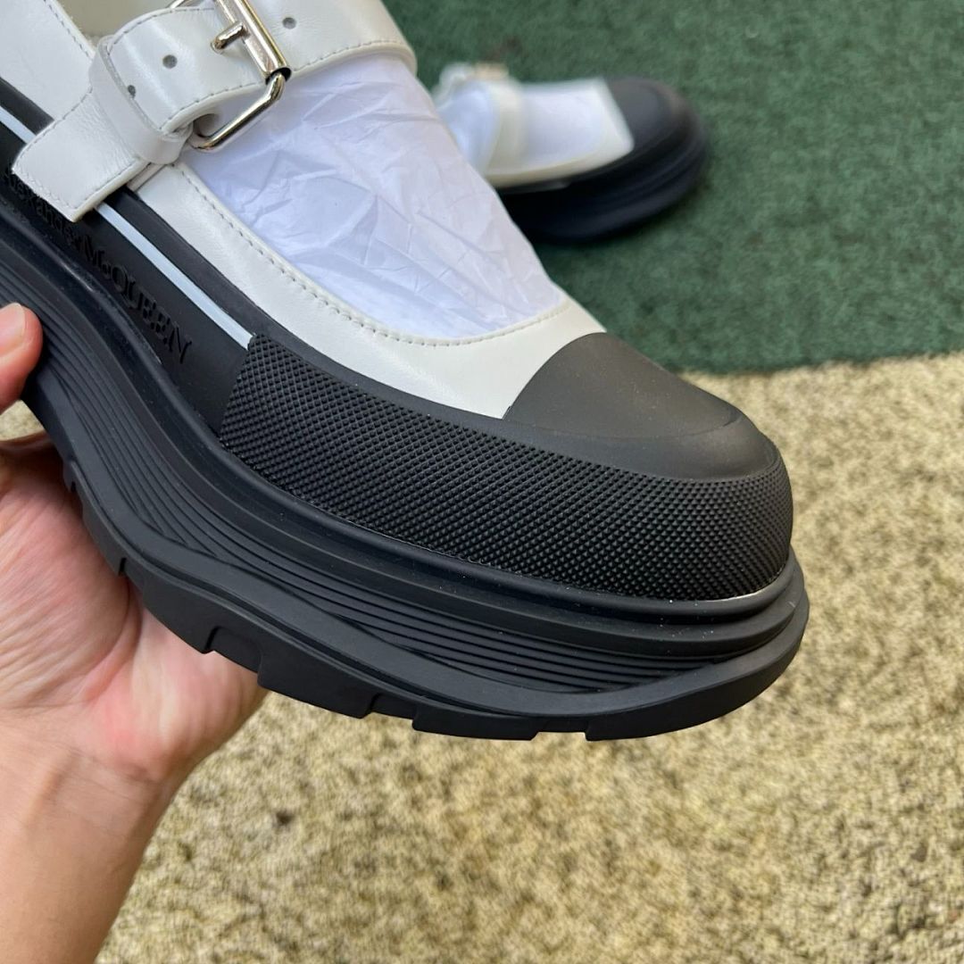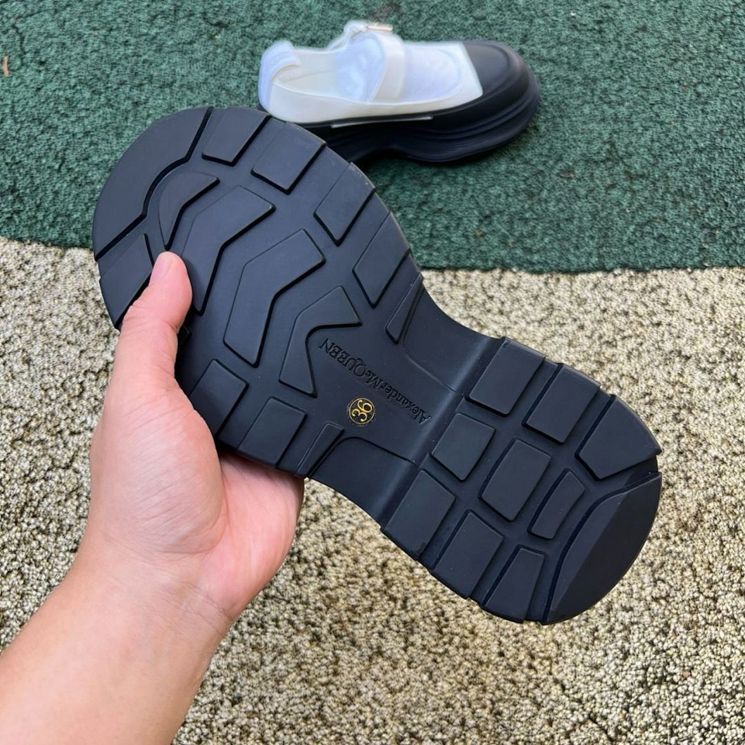 Alexander McQueen Tread Slick Hybrid Mary Jane Flat Shoes White Black