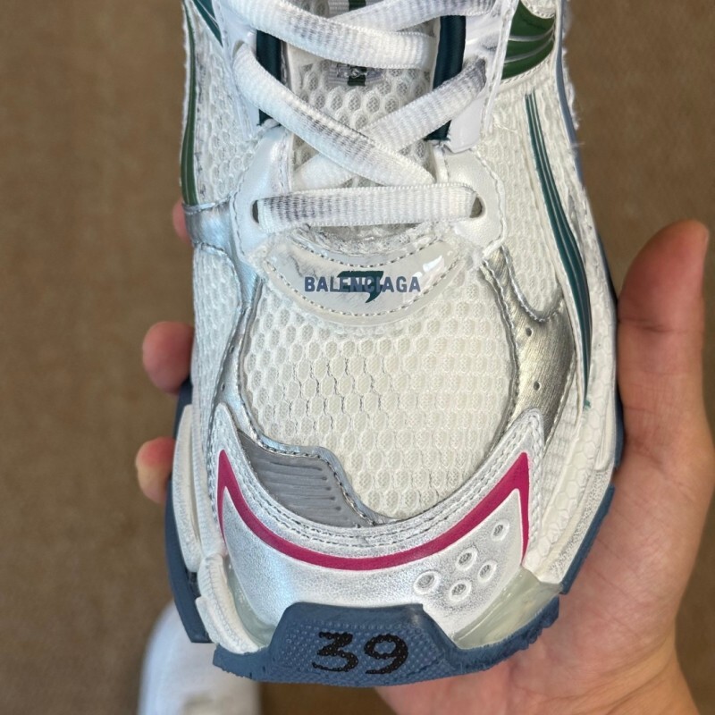Elevate your footwear collection with the iconic Balenciaga Runner Sneaker in a captivating White, Blue, Green, and Pink colorway. Designed for those who dare to stand out, these sneakers seamlessly blend high-fashion aesthetics with unparalleled comfort and a distinctive athletic edge. Crafted from a dynamic mix of premium materials and featuring Balenciaga’s signature deconstructed, pre-worn look, the Runner Sneaker is more than just a shoe – it’s a statement. Experience the perfect fusion of avant-garde design and everyday wearability, making every step a confident stride into the world of luxury street style.