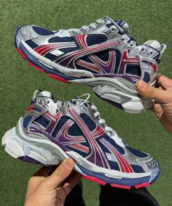 Step into the future of footwear with the iconic Balenciaga Runner Sneakers. This striking pair, featuring a dynamic blend of navy, red, silver, and purple hues, redefines contemporary streetwear with its meticulously crafted deconstructed aesthetic. Designed for the discerning individual who values avant-garde style and unparalleled comfort, these sneakers are more than just shoes – they are a statement. Experience the perfect fusion of luxury fashion and athletic performance, engineered to elevate your everyday look and turn heads wherever you go. Embrace cutting-edge design and superior craftsmanship with every stride.
