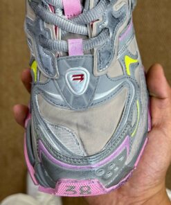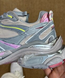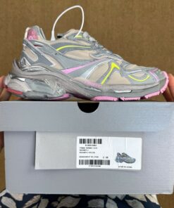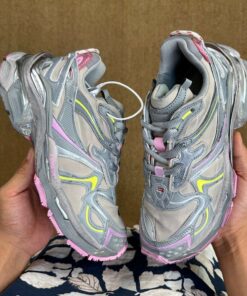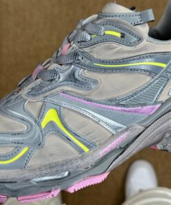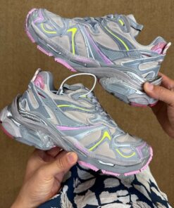 Step into the future of luxury athletic wear with the **Balenciaga Runner Trainers** in a captivating Grey, Yellow, and Pink colorway. These iconic trainers are more than just footwear; they are a bold fashion statement, meticulously designed for the discerning individual who appreciates avant-garde style fused with unparalleled comfort. Embodying Balenciaga’s innovative spirit, the Runner Trainers offer a distinctive silhouette that instantly elevates any ensemble, transforming your everyday look into an extraordinary display of contemporary chic.