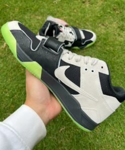 The Chase B x Travis Scott x Jordan Jumpman Jack TR blends music, culture, and sneaker innovation in one bold design. Featuring a black mesh upper with silver suede overlays and a glow-in-the-dark Illusion Green outsole, it captures Chase B’s vision of “finding light in dark moments.” Signature details like the reverse Swoosh, midfoot strap, and Cactus Jack branding complete the look. Built for comfort and style, this limited edition sneaker embodies Travis Scott’s creative energy and Jordan Brand’s legacy.