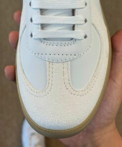 - Premium Material Craftsmanship: Expertly constructed with luxurious white smooth calfskin and elegant beige suede overlays, ensuring both durability and a refined aesthetic.