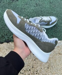 Step into an elevated world of luxury and contemporary elegance with the Dior Vibe Sneaker Khaki Suede, White Mesh and Gray Dior Oblique Motif. Meticulously crafted for the discerning individual, this exquisite sneaker perfectly marries iconic Dior aesthetics with practical, modern design. Experience the ultimate fusion of high fashion and exceptional comfort, making a bold statement whether you’re navigating urban landscapes or enjoying a relaxed day out. This sneaker is a true testament to Dior’s legacy of innovation, impeccable quality, and timeless style.