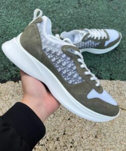 - Iconic Dior Design: Features the instantly recognizable Gray Dior Oblique Motif, elegantly combined with premium Khaki Suede and crisp White Mesh for a distinctive and luxurious aesthetic.