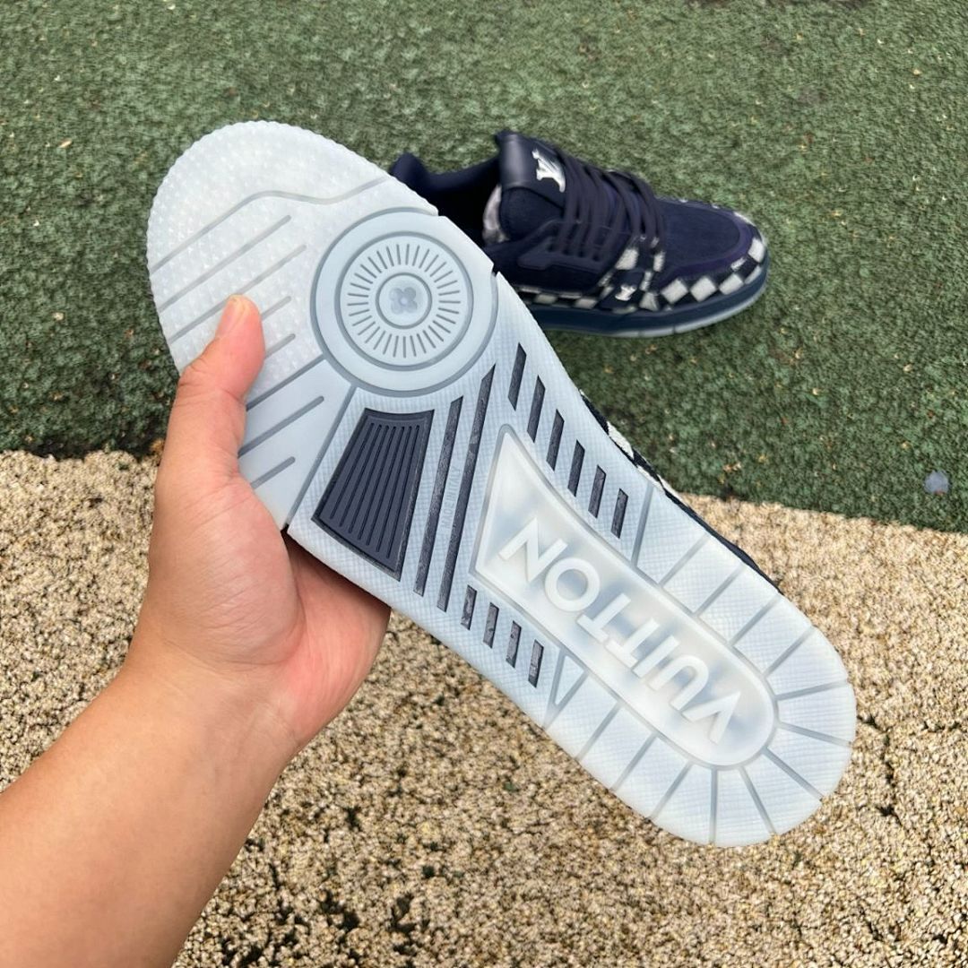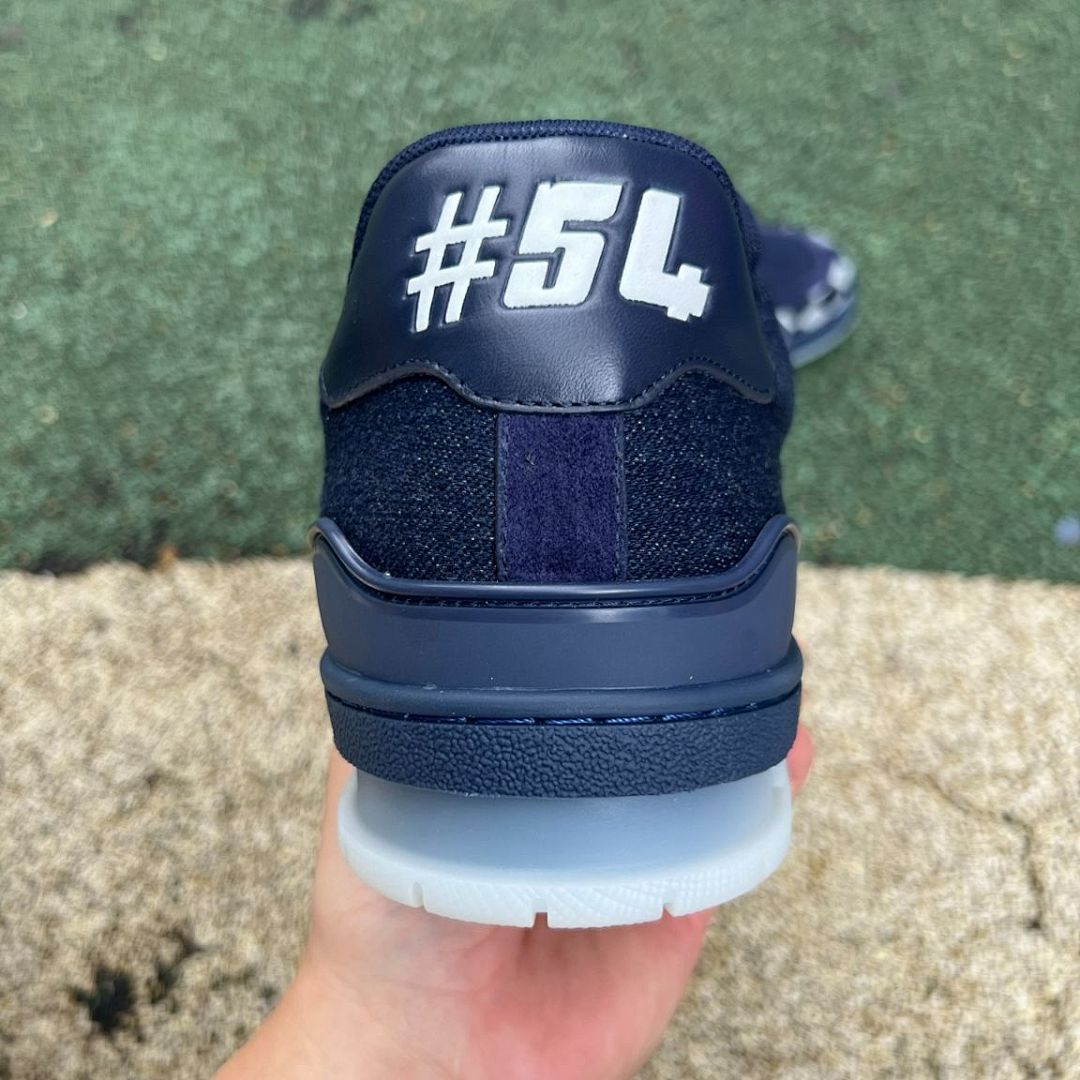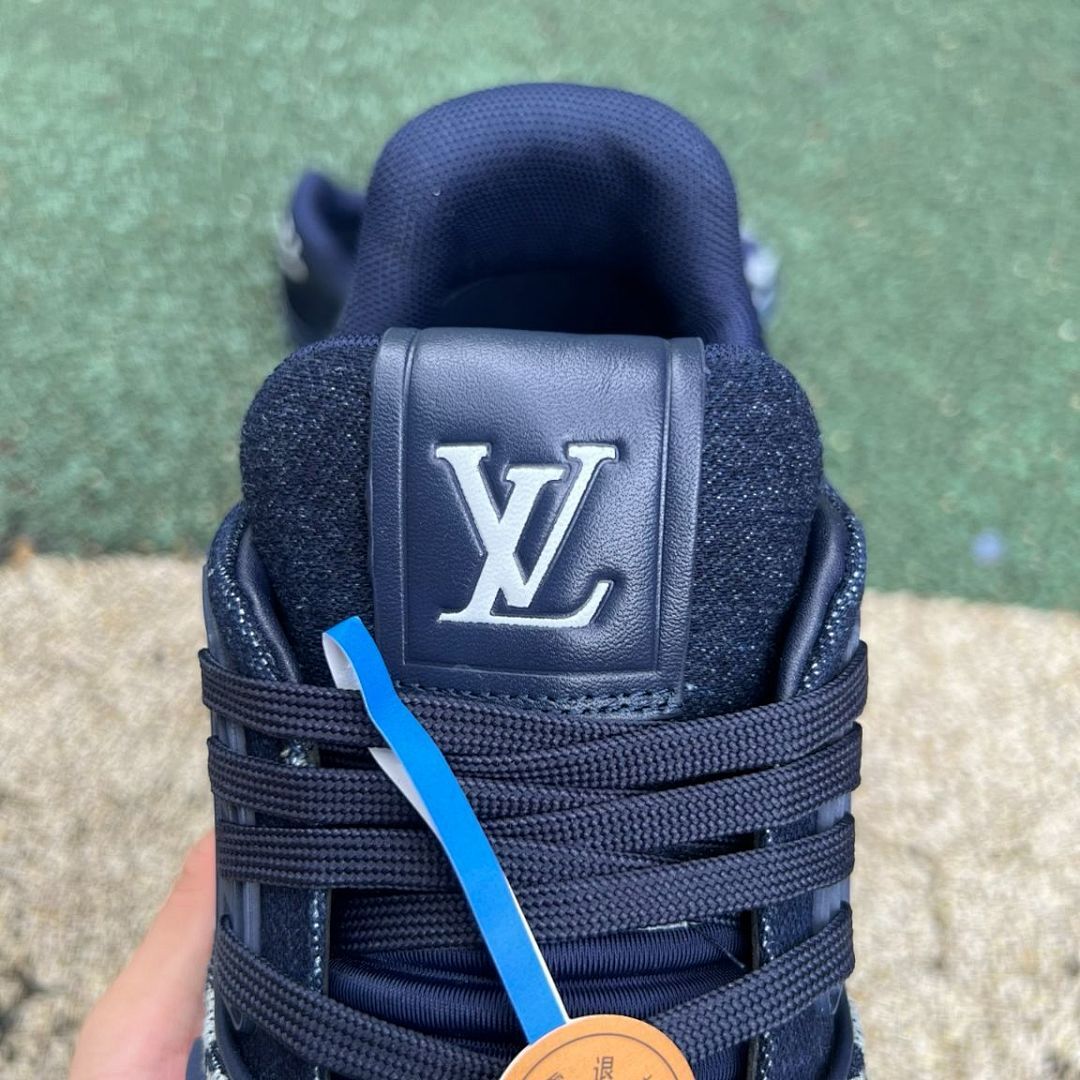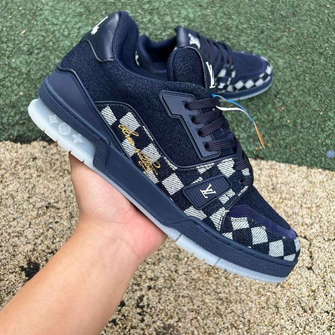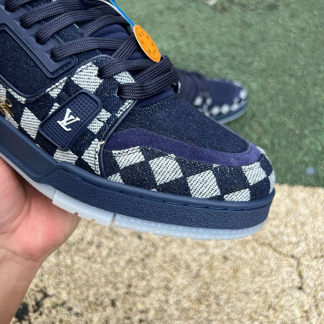 Louis Vuitton LV Trainer Sneaker Damier Denim Bleu with Gold Signature 1A9Z0Y
