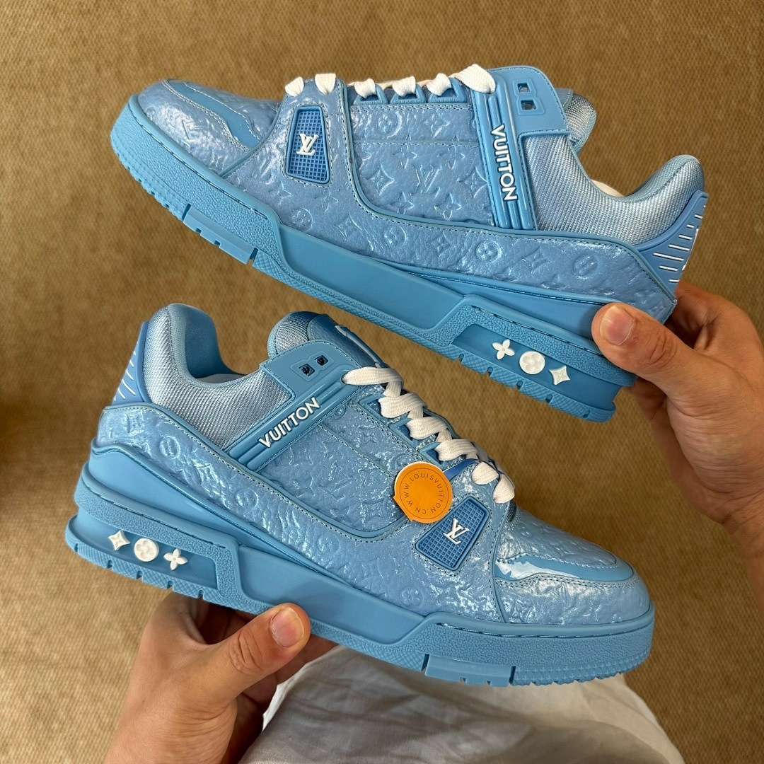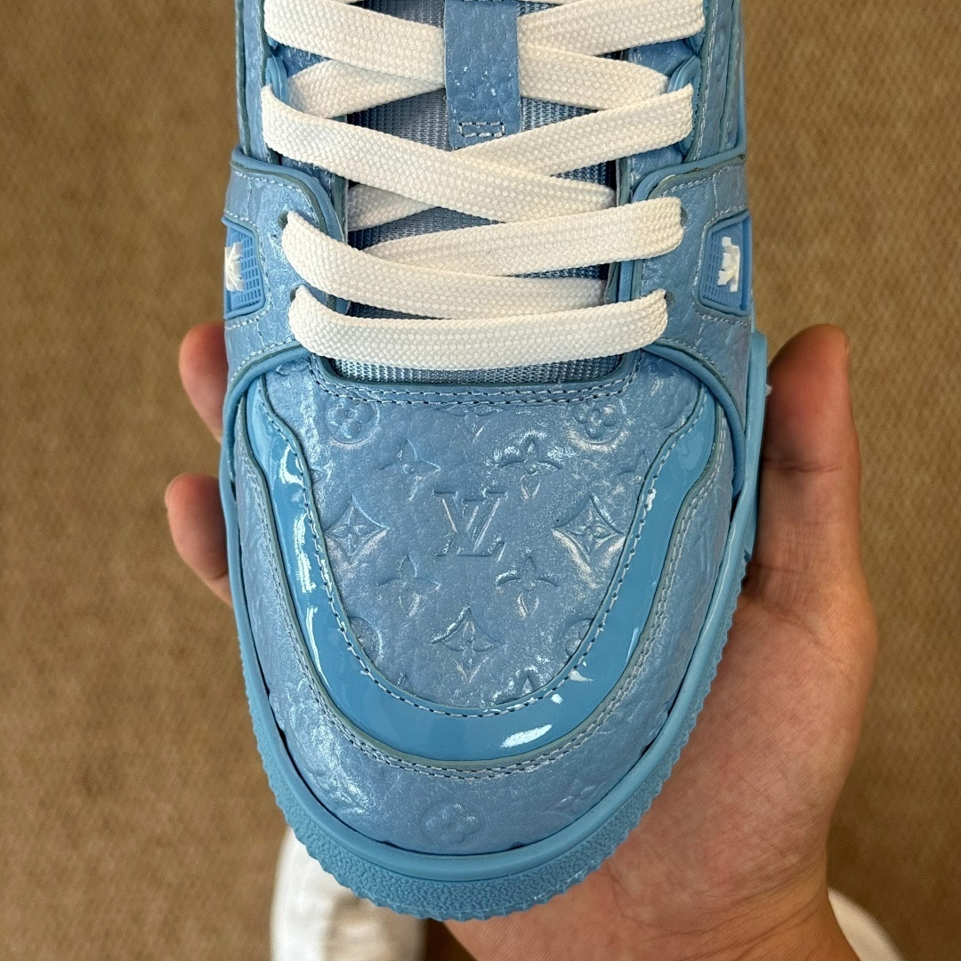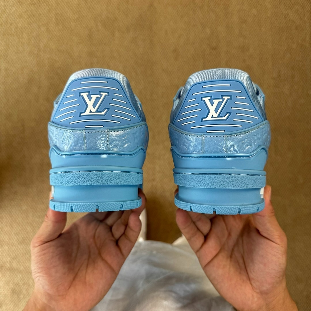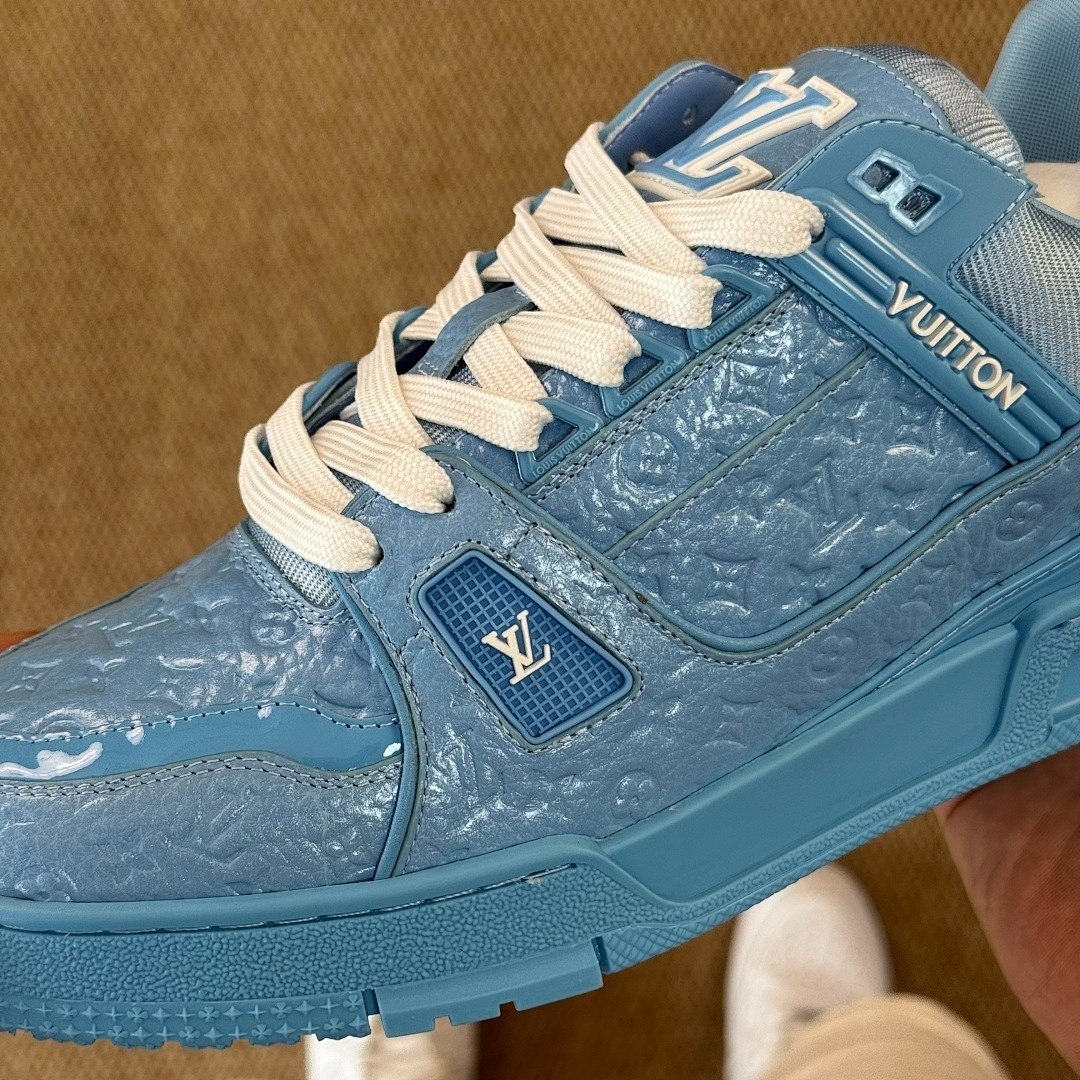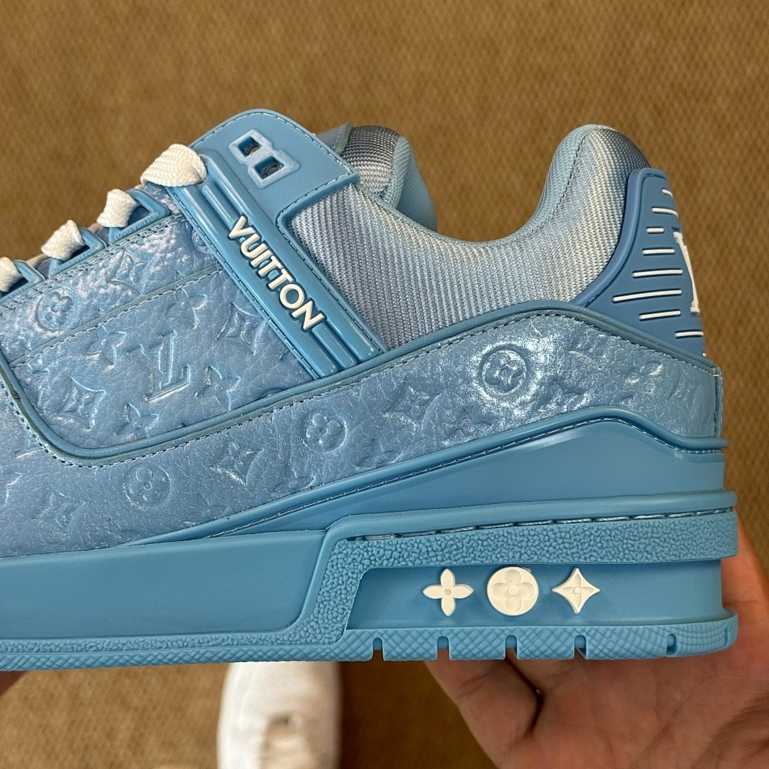 Louis Vuitton LV Trainer Sneaker Monogram Embossed Calfskin Light Blue 1A9Z6L