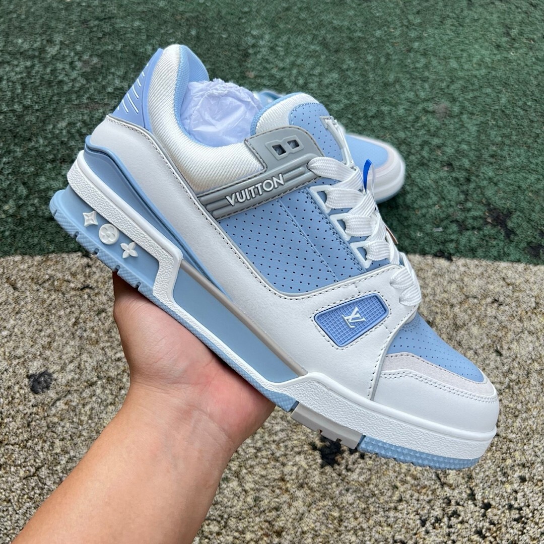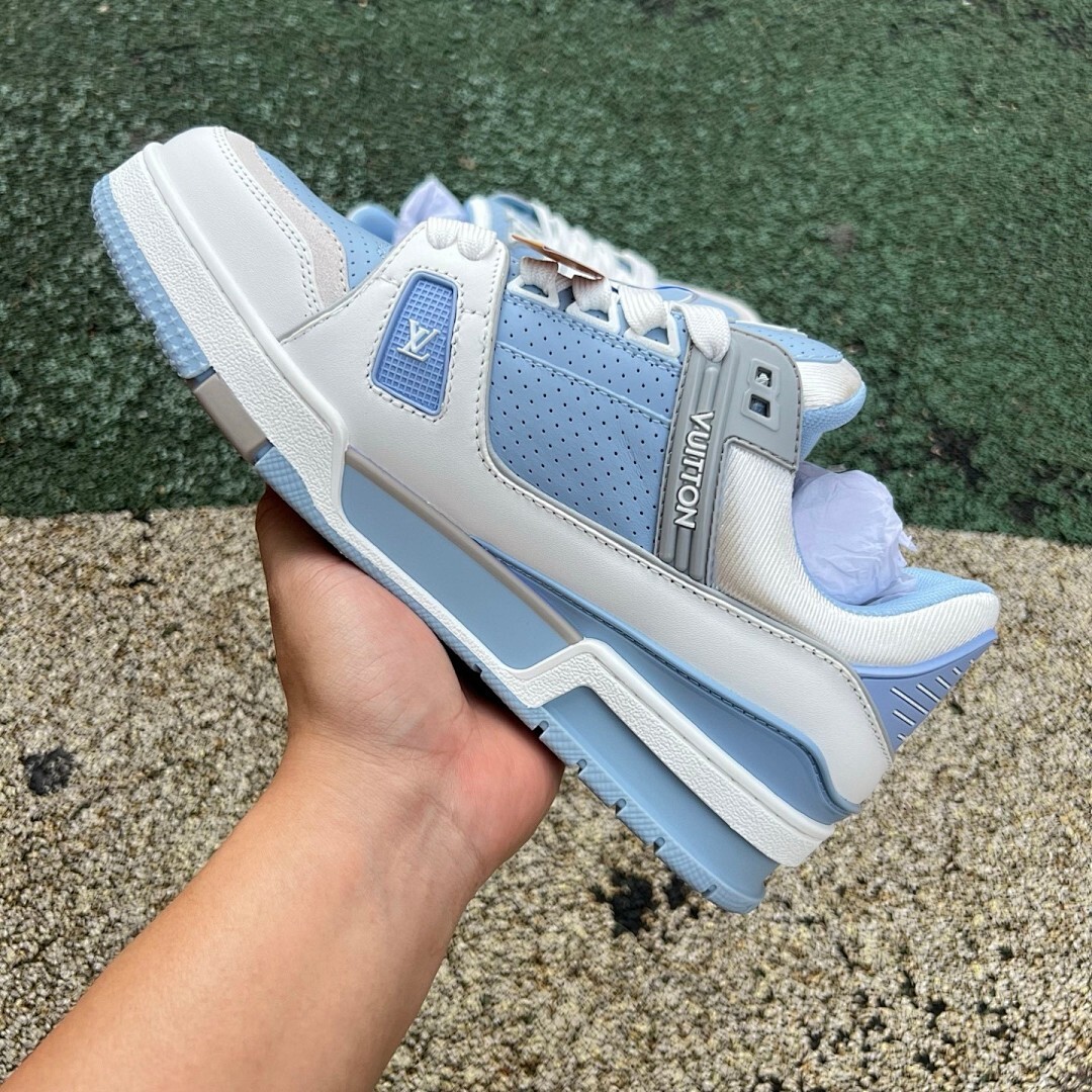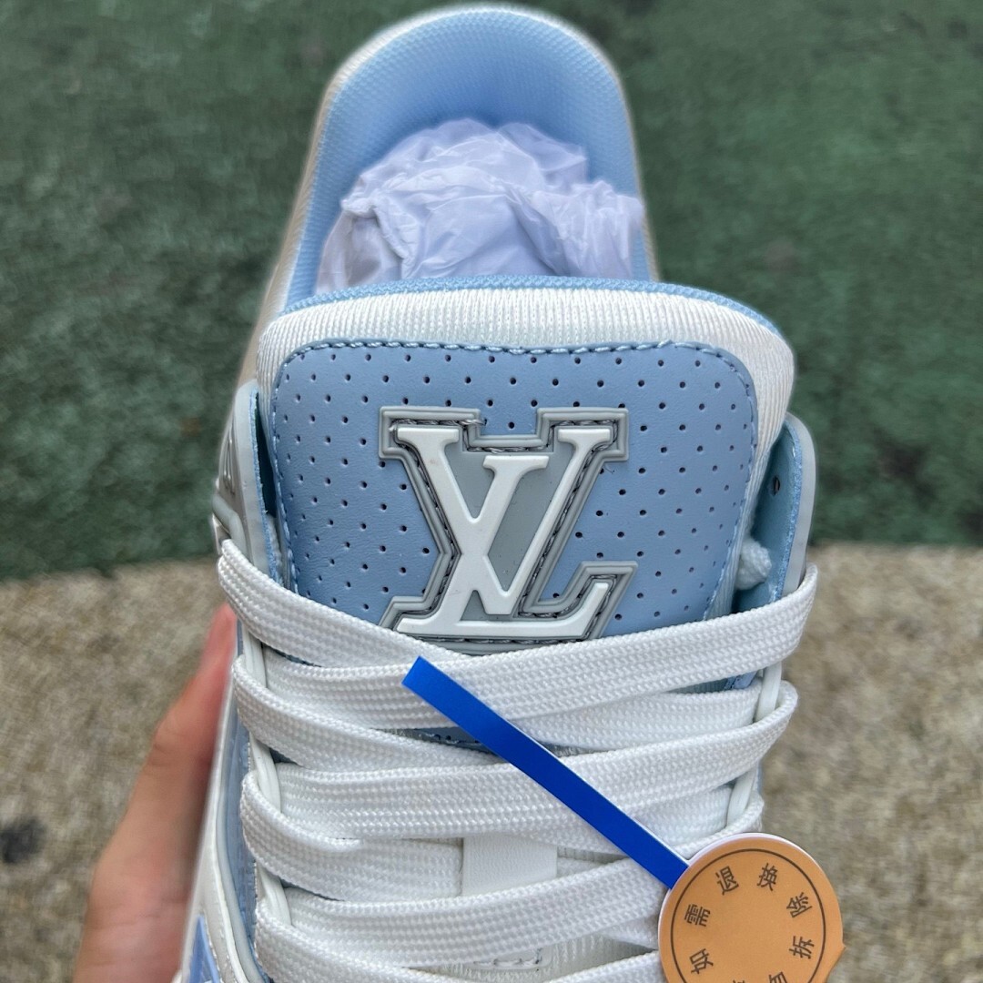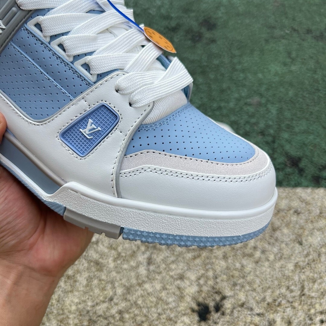 Louis Vuitton LV Trainer Sneaker White and Pastel Blue