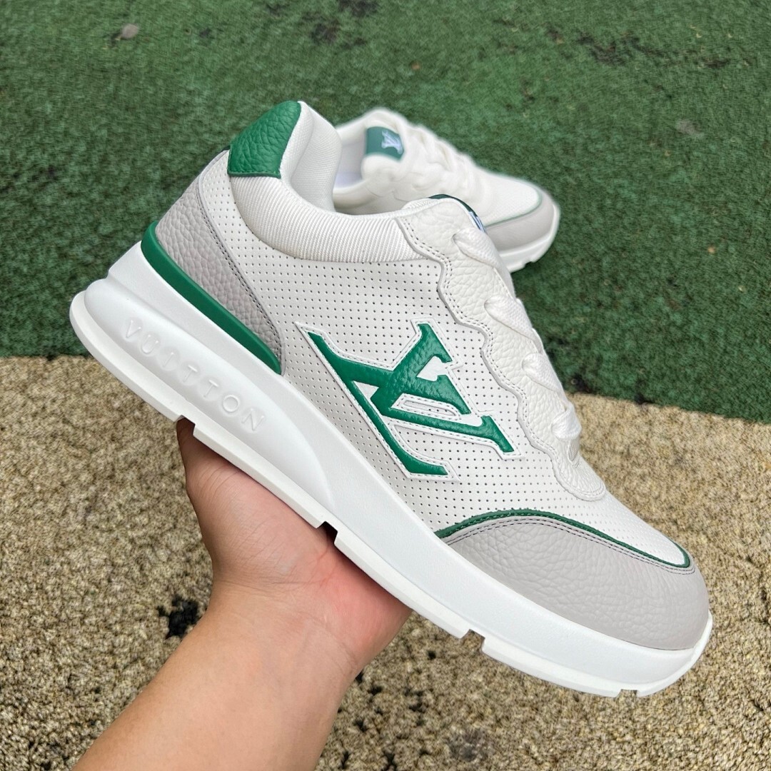 Step into unparalleled sophistication and street-ready flair with the exquisite Louis Vuitton LV Trainer Sneaker in White, Green, and Grey. More than just footwear, these sneakers are a meticulously crafted statement piece, reflecting Louis Vuitton’s legendary commitment to luxury and design. Perfect for the discerning individual, the LV Trainer seamlessly blends athletic inspiration with high fashion elegance, offering supreme comfort and an unmistakable silhouette that commands attention. Experience the perfect fusion of heritage craftsmanship and contemporary style, ensuring every step you take is a testament to refined taste and exclusive design.