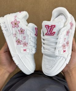 Step into unparalleled luxury and iconic style with the Louis Vuitton LV Trainer Sneaker White Pink Cherry Blossom. This exquisite sneaker is a true masterpiece, blending high-fashion artistry with streetwear sensibilities. Crafted for those who appreciate supreme quality and a distinctive aesthetic, it features a captivating colorway of pristine white, delicate pink, and vibrant cherry blossom accents that perfectly capture a fresh, sophisticated vibe. Elevate your everyday look or make a bold statement at any exclusive event; these trainers are designed to provide exceptional comfort without compromising on the legendary Louis Vuitton elegance.