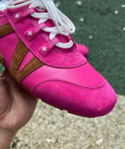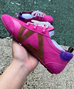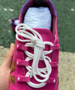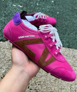 Step into unparalleled luxury and contemporary style with the Louis Vuitton Run Away Sneaker. Crafted for the discerning individual, this iconic sneaker masterfully blends vibrant pink suede with classic brown Monogram canvas and subtle purple accents, creating a statement piece that effortlessly elevates any casual or smart-casual ensemble. Experience the perfect fusion of high fashion design, exquisite craftsmanship, and exceptional comfort, designed to keep you stylishly ahead of the curve, exclusively available at the AllStarShirt Store.