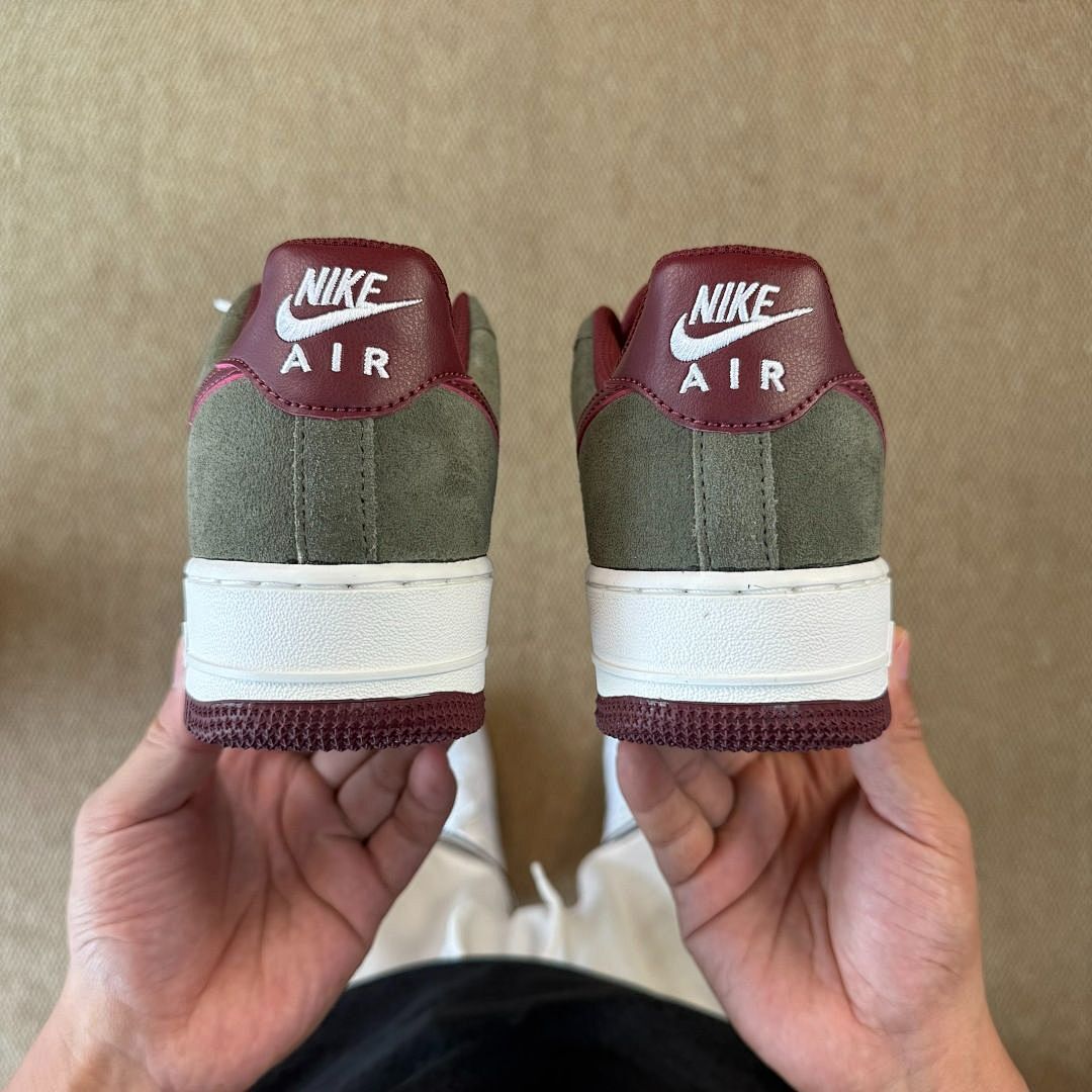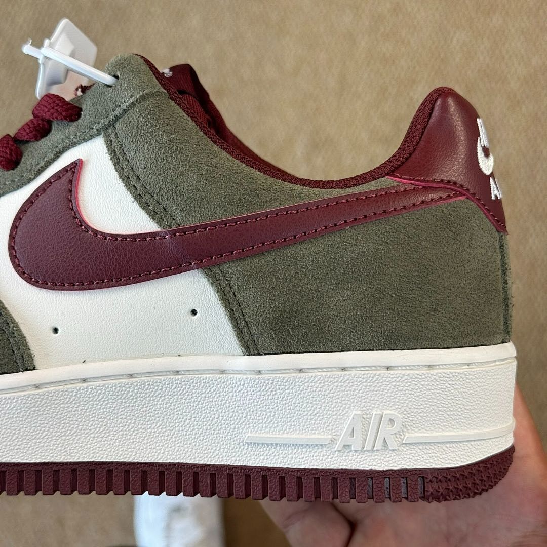 Nike Air Force 1 Low Olive Green Suede White Burgundy